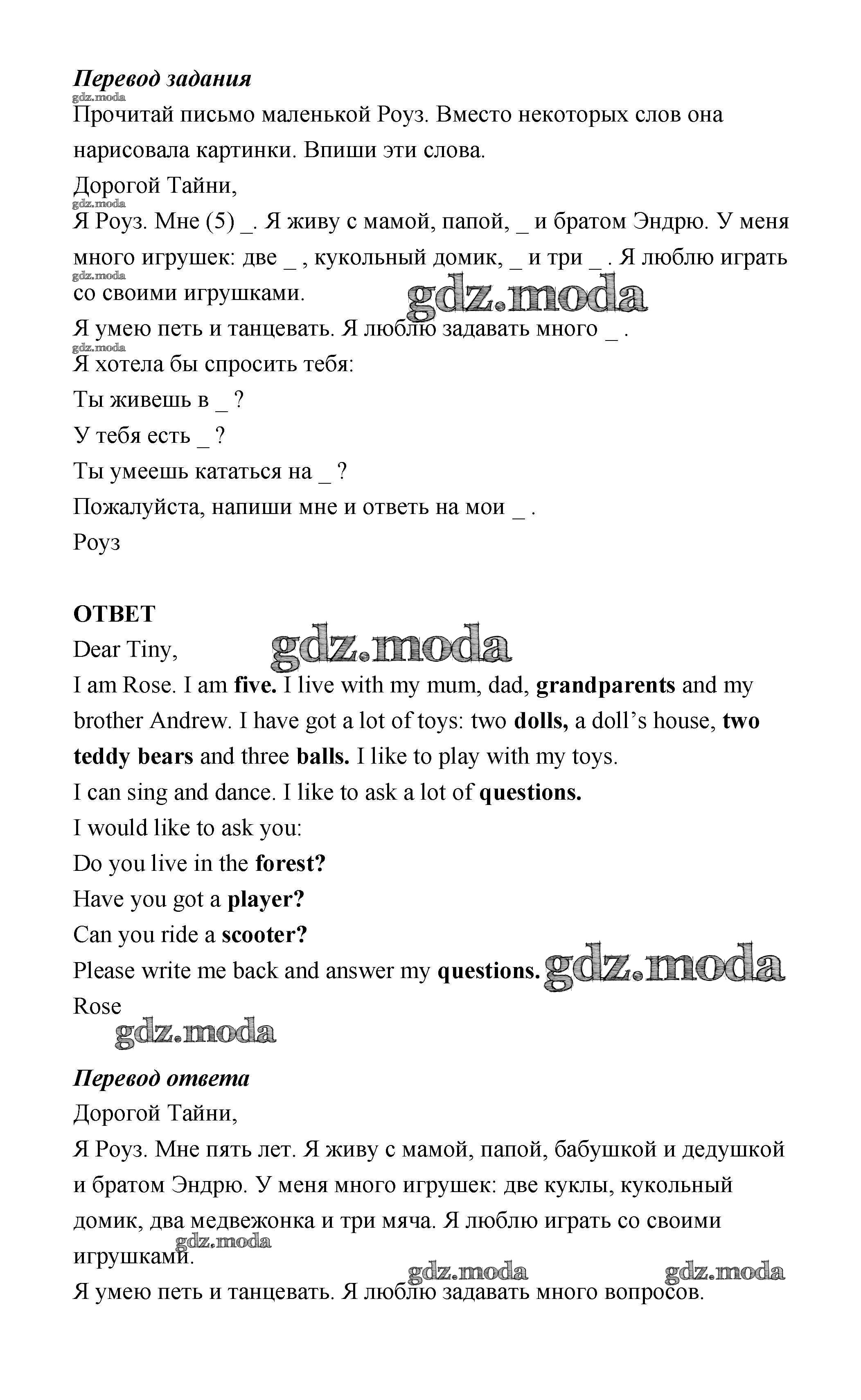 ОТВЕТ на задание № 59 Рабочая тетрадь с контрольными работами по Английскому языку 3 класс Биболетова Enjoy English