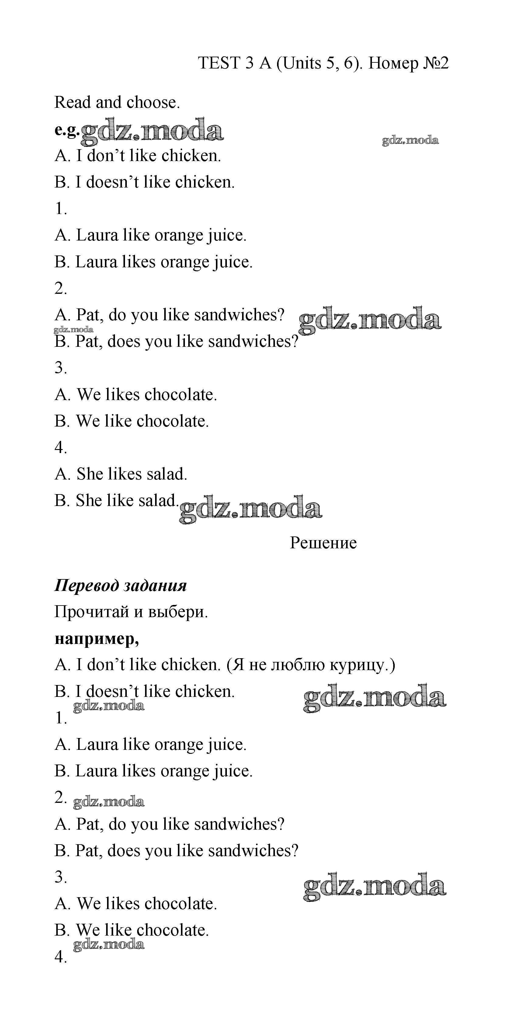 ГДЗ решение к заданию № A Английский язык 3 класс контрольные задания Быкова Просвещение 2021 ФГОС бесплатно на гдз.мода!