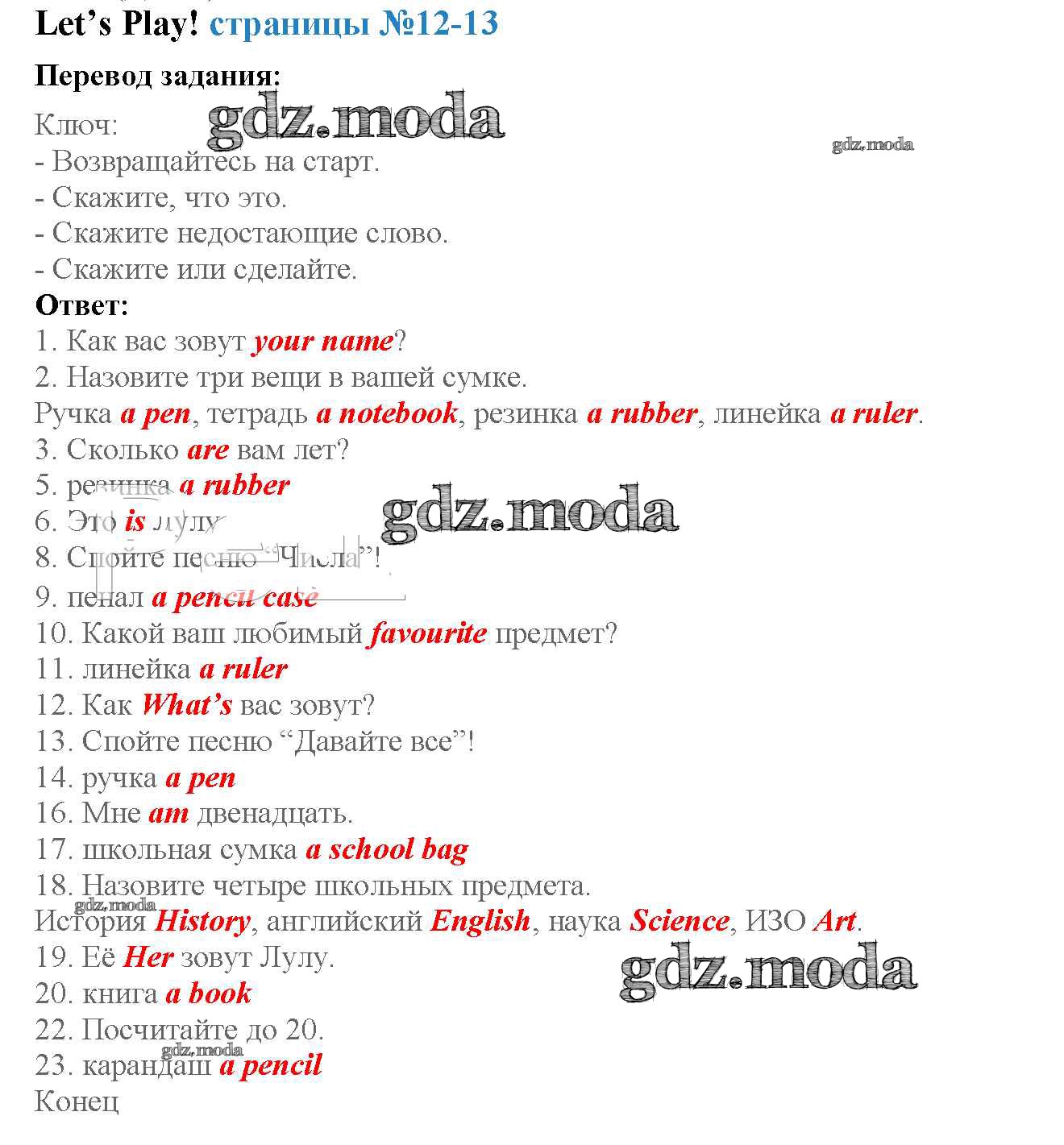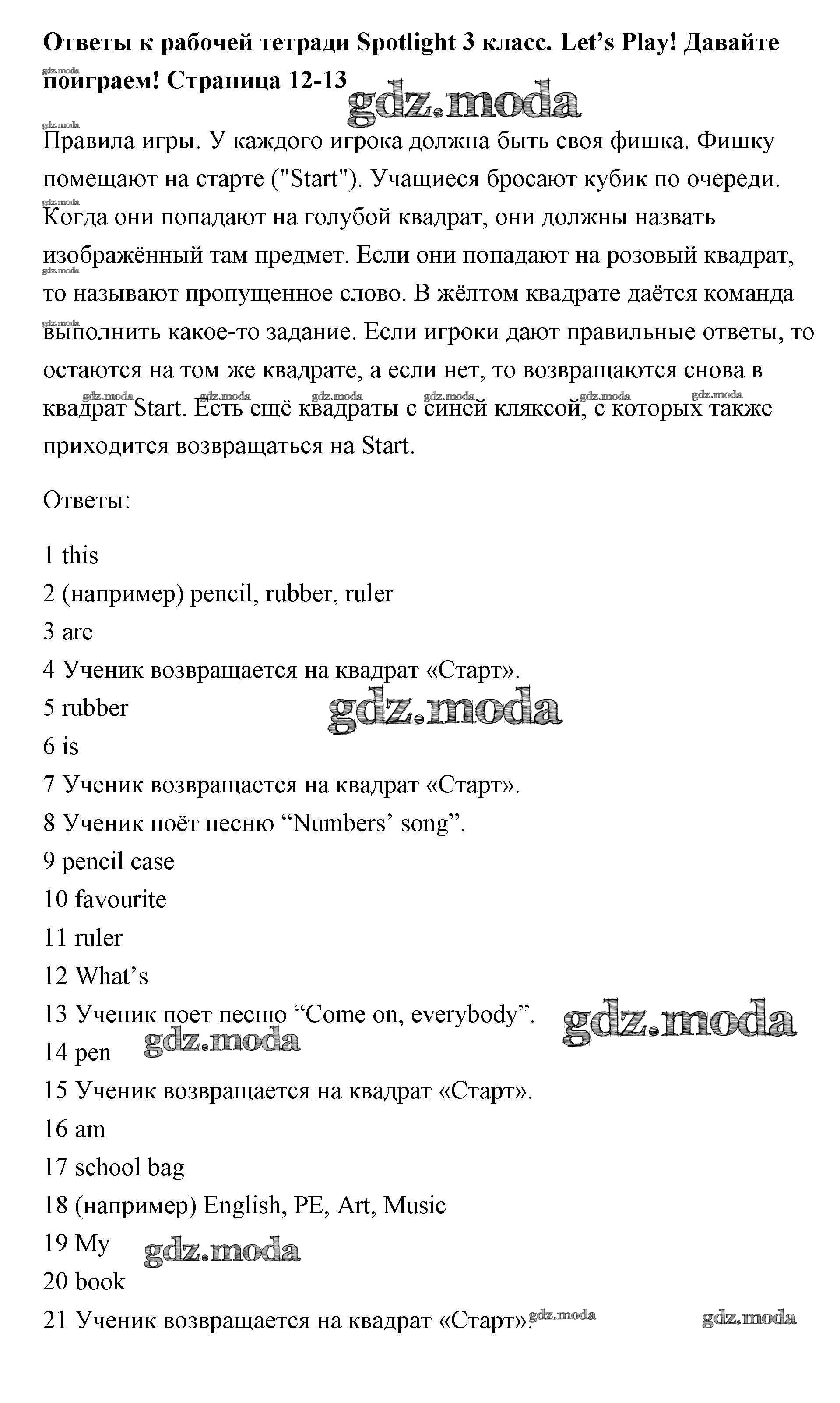 ОТВЕТ на задание № 12-13 Рабочая тетрадь по Английскому языку 3 класс Быкова Spotlight