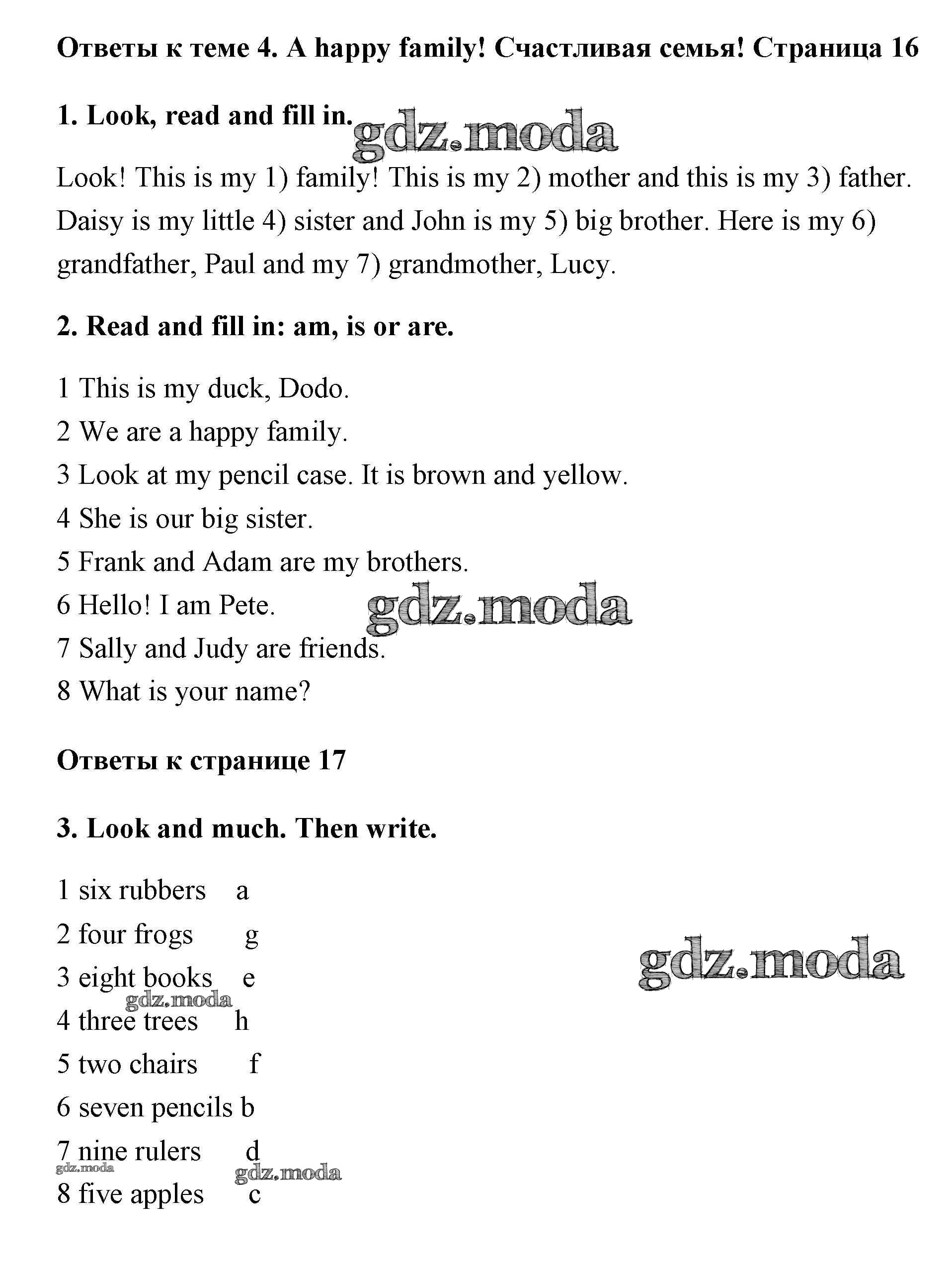 ОТВЕТ на задание № 16-17 Рабочая тетрадь по Английскому языку 3 класс Быкова Spotlight