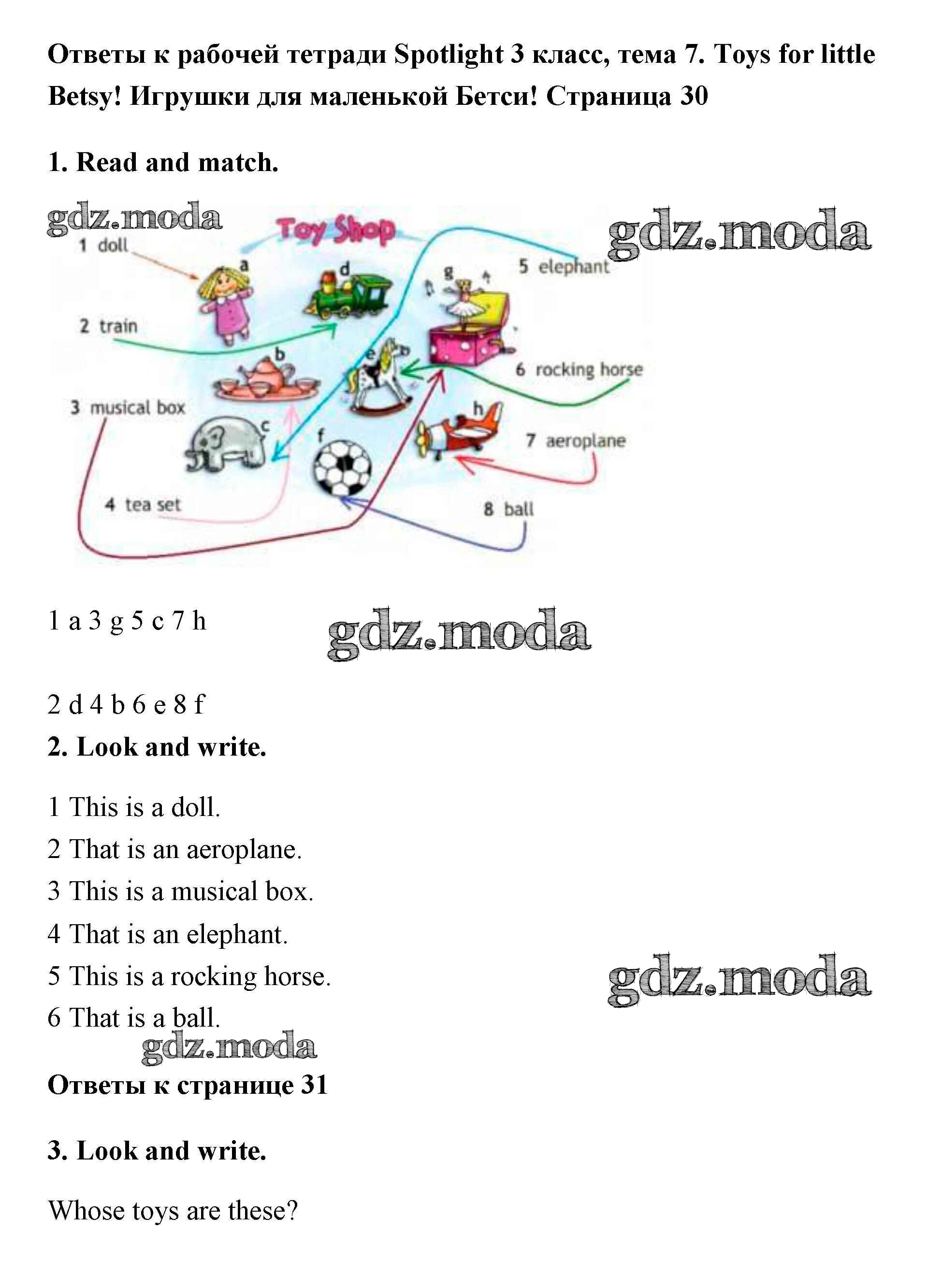 ОТВЕТ на задание № 30-31 Рабочая тетрадь по Английскому языку 3 класс Быкова Spotlight