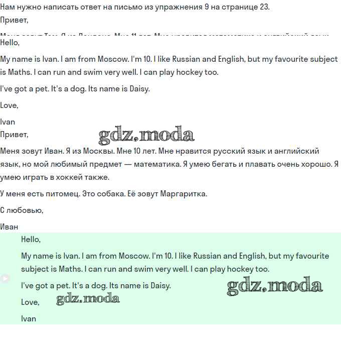 ОТВЕТ на задание № 23 Сборник упражнений по Английскому языку 3 класс Быкова Spotlight