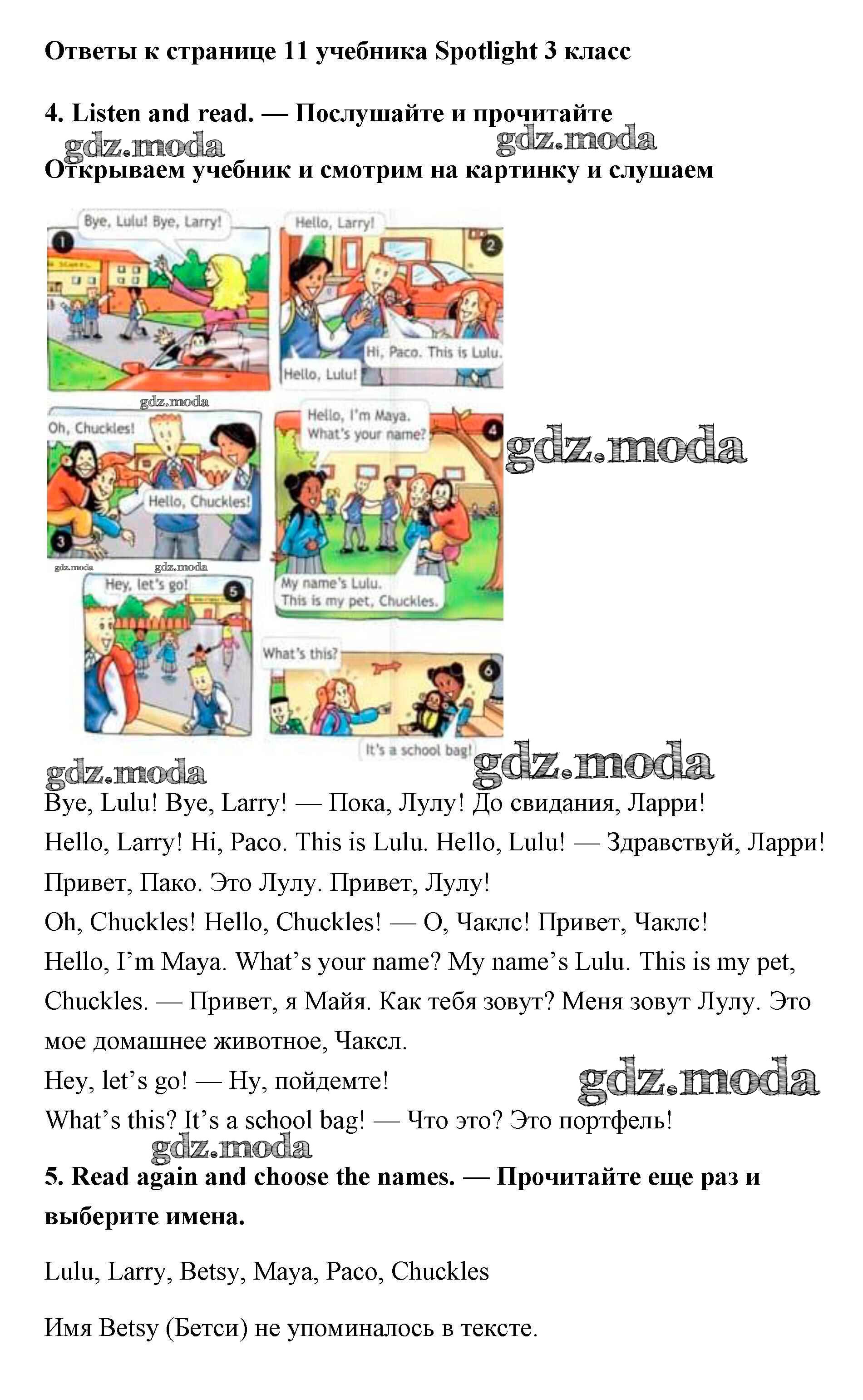 ОТВЕТ на задание № 11 Учебник по Английскому языку 3 класс Быкова Spotlight