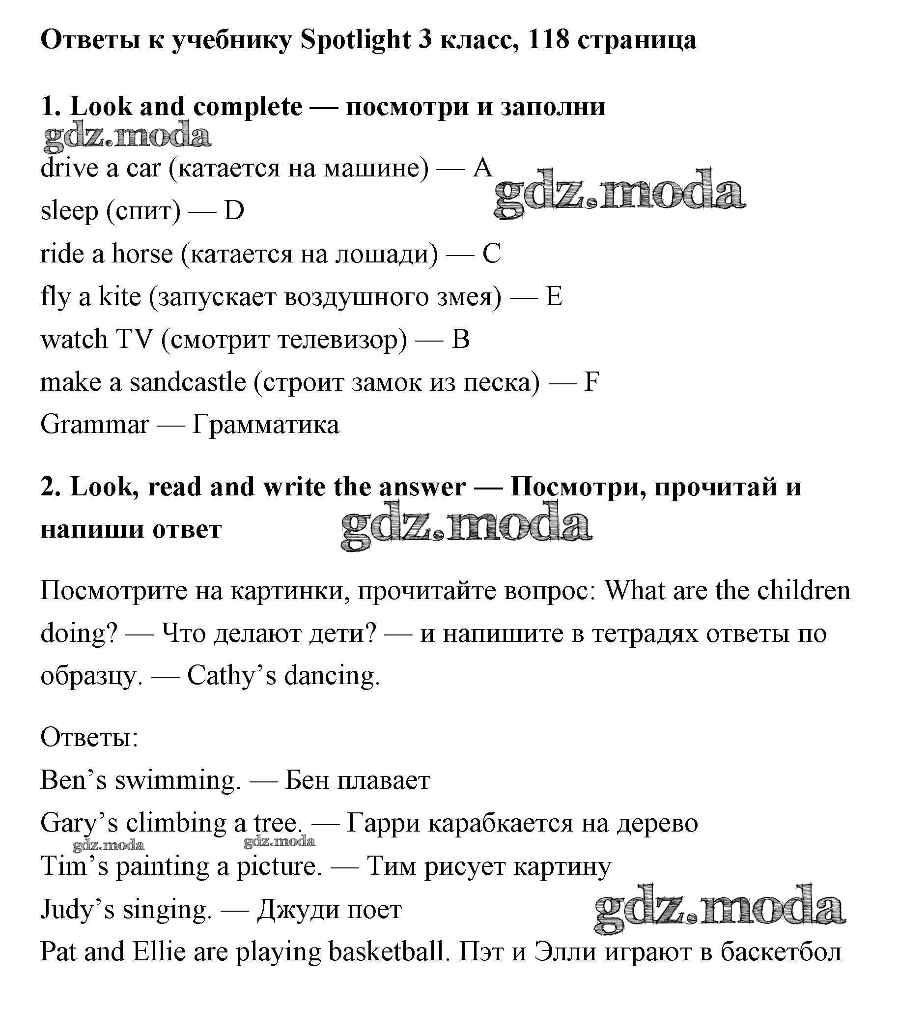 ОТВЕТ на задание № 118 Учебник по Английскому языку 3 класс Быкова Spotlight