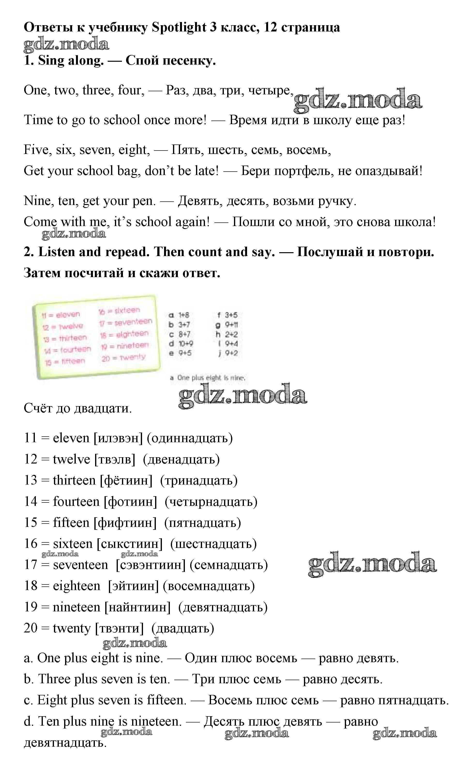 ОТВЕТ на задание № 12 Учебник по Английскому языку 3 класс Быкова Spotlight