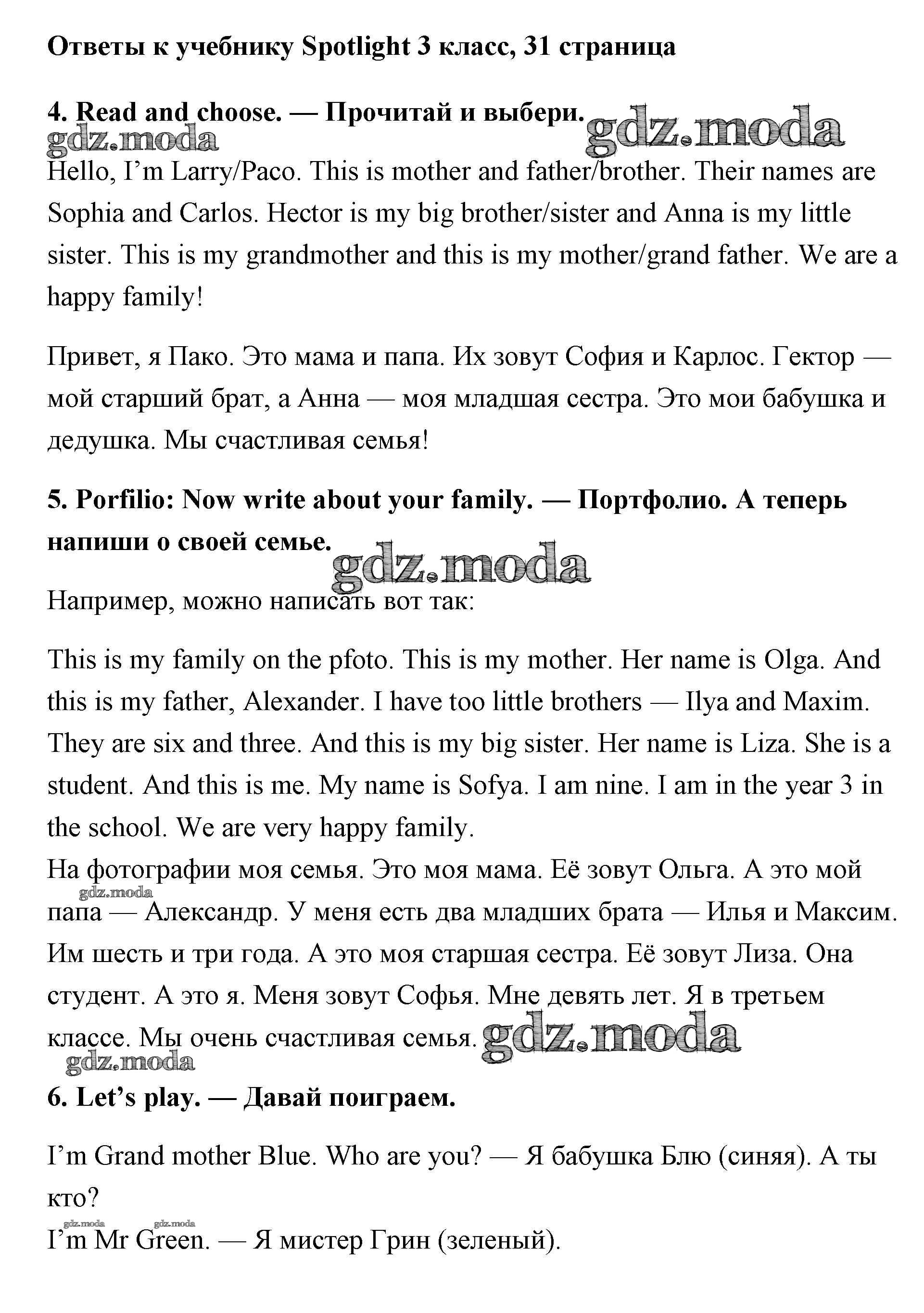 ОТВЕТ на задание № 31 Учебник по Английскому языку 3 класс Быкова Spotlight