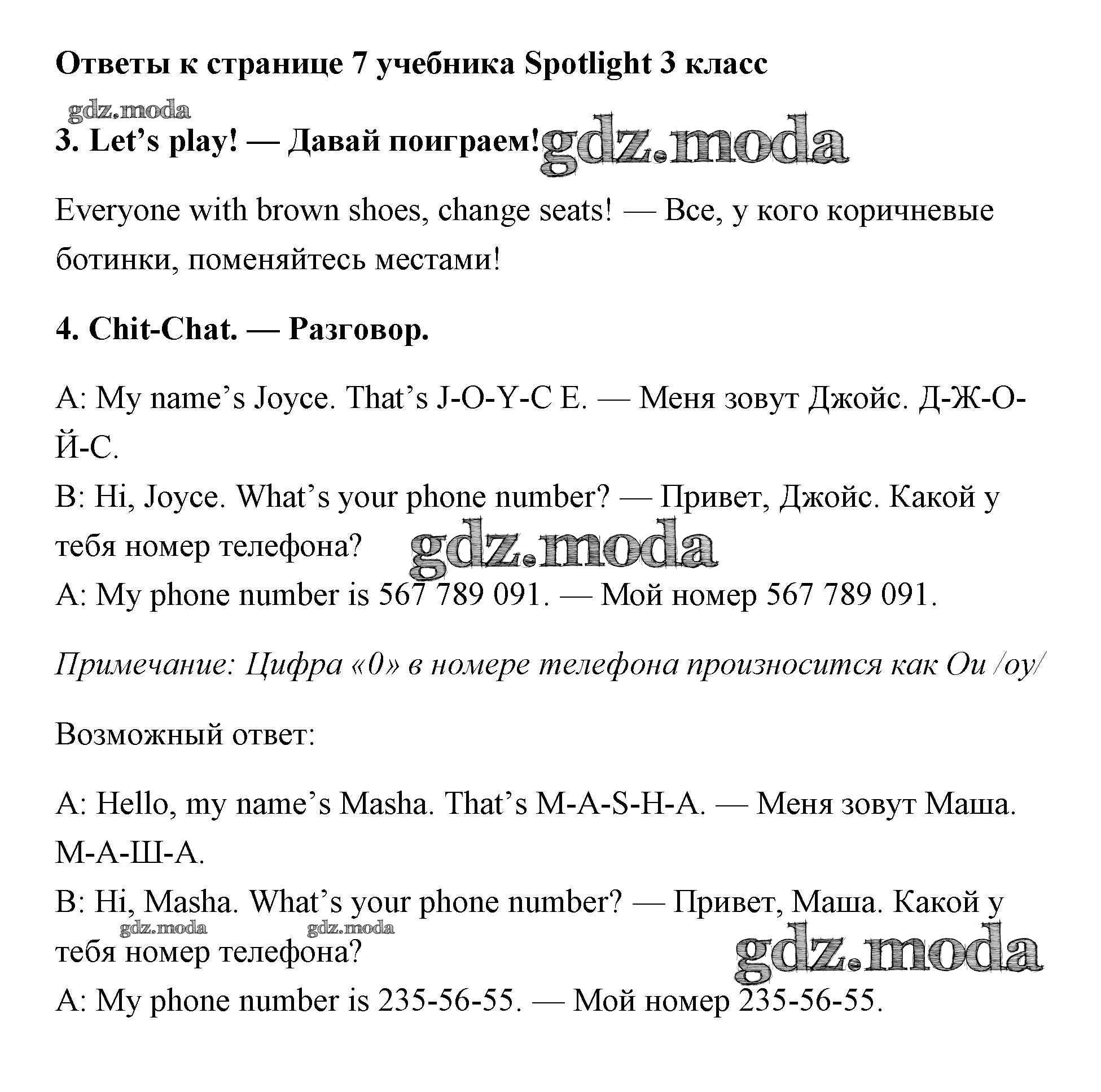 ОТВЕТ на задание № 7 Учебник по Английскому языку 3 класс Быкова Spotlight