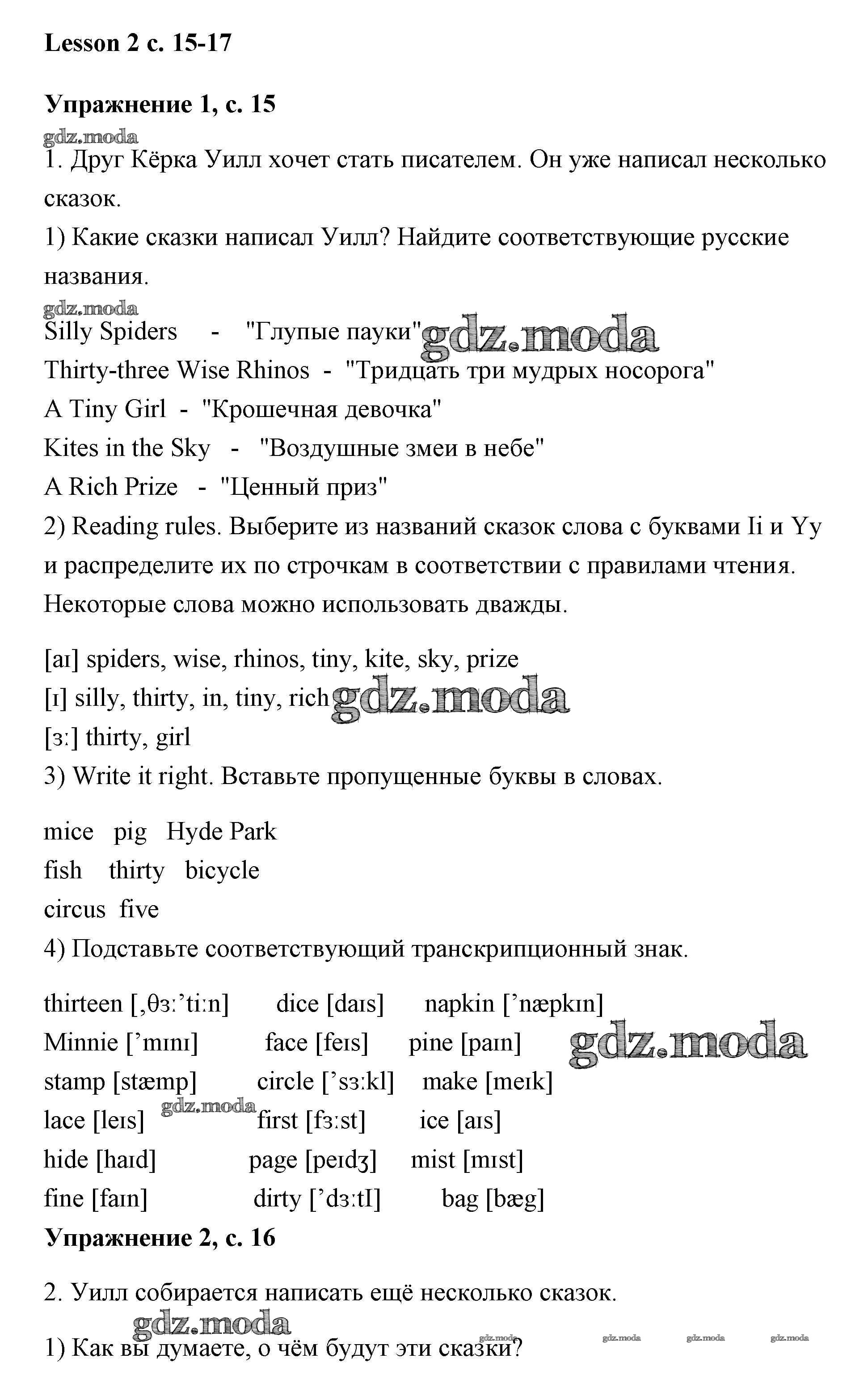 ОТВЕТ на задание № Lesson 2 (страницы 15-17) Рабочая тетрадь по Английскому языку 3 класс Кузовлев