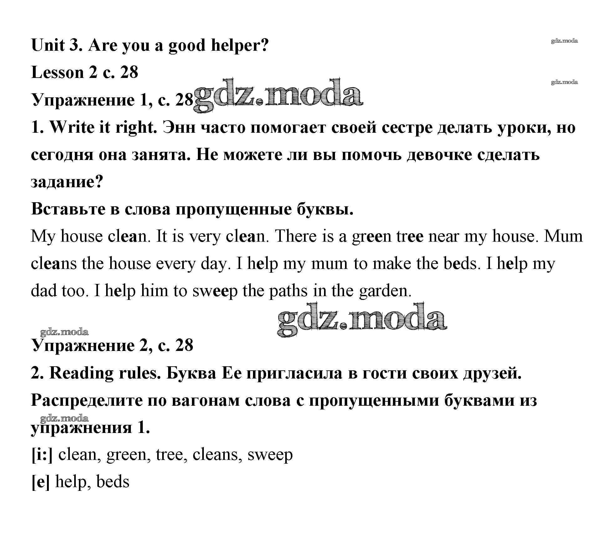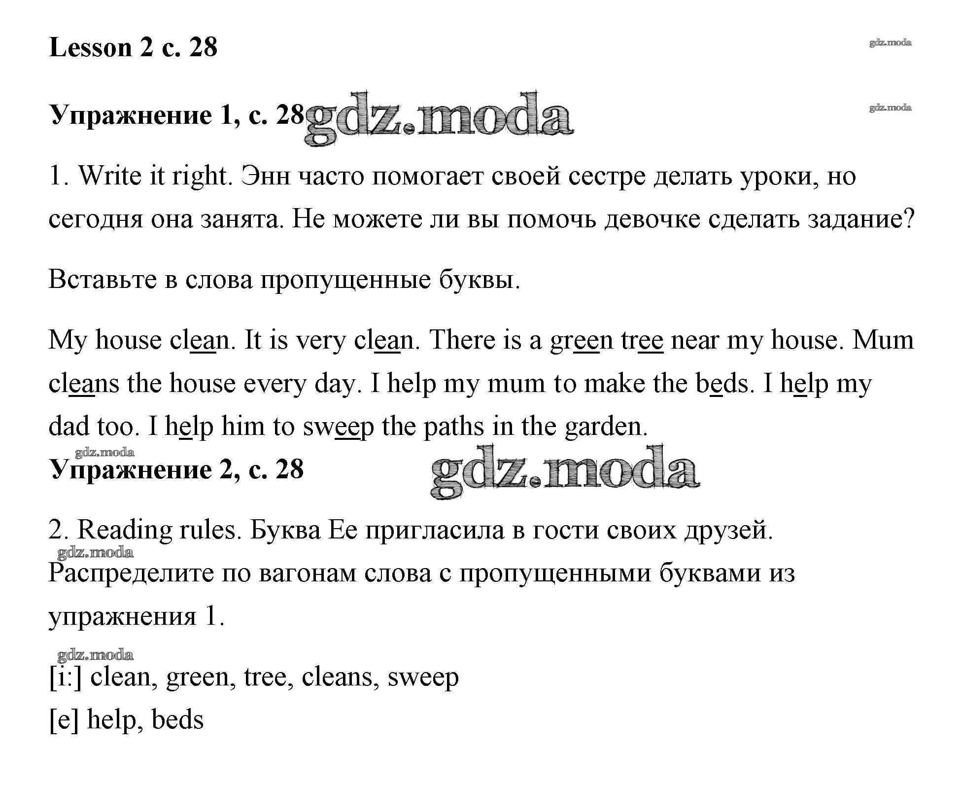 ГДЗ решение к заданию № Lesson 2 (страница 28) Английский язык 3 класс Кузовлёв (рабочая тетрадь) Просвещение 2016 ФГОС бесплатно на гдз.мода!