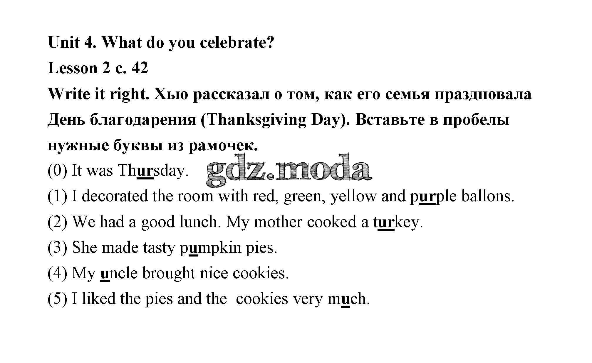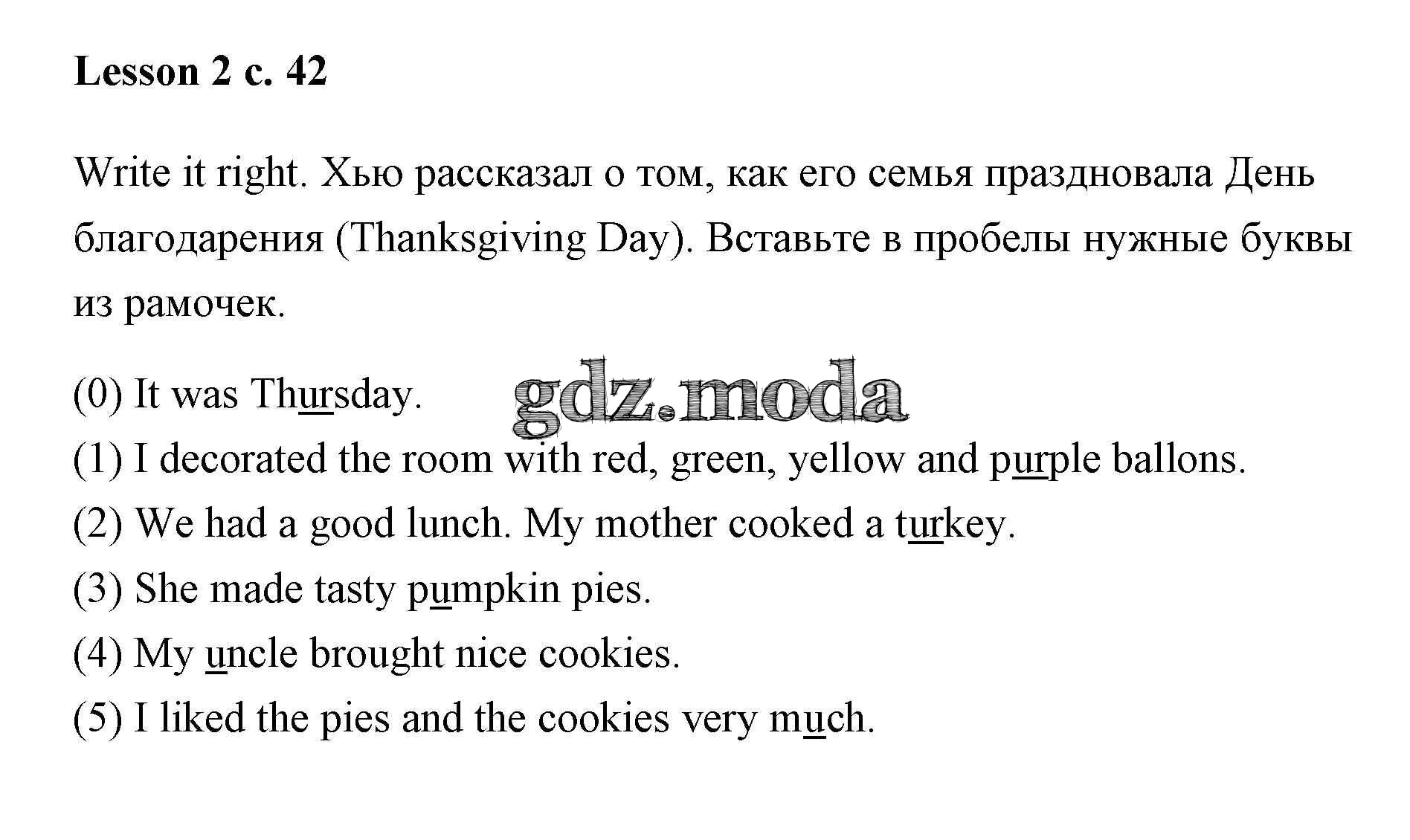 ГДЗ решение к заданию № Lesson 2 (страница 42) Английский язык 3 класс Кузовлёв (рабочая тетрадь) Просвещение 2016 ФГОС бесплатно на гдз.мода!