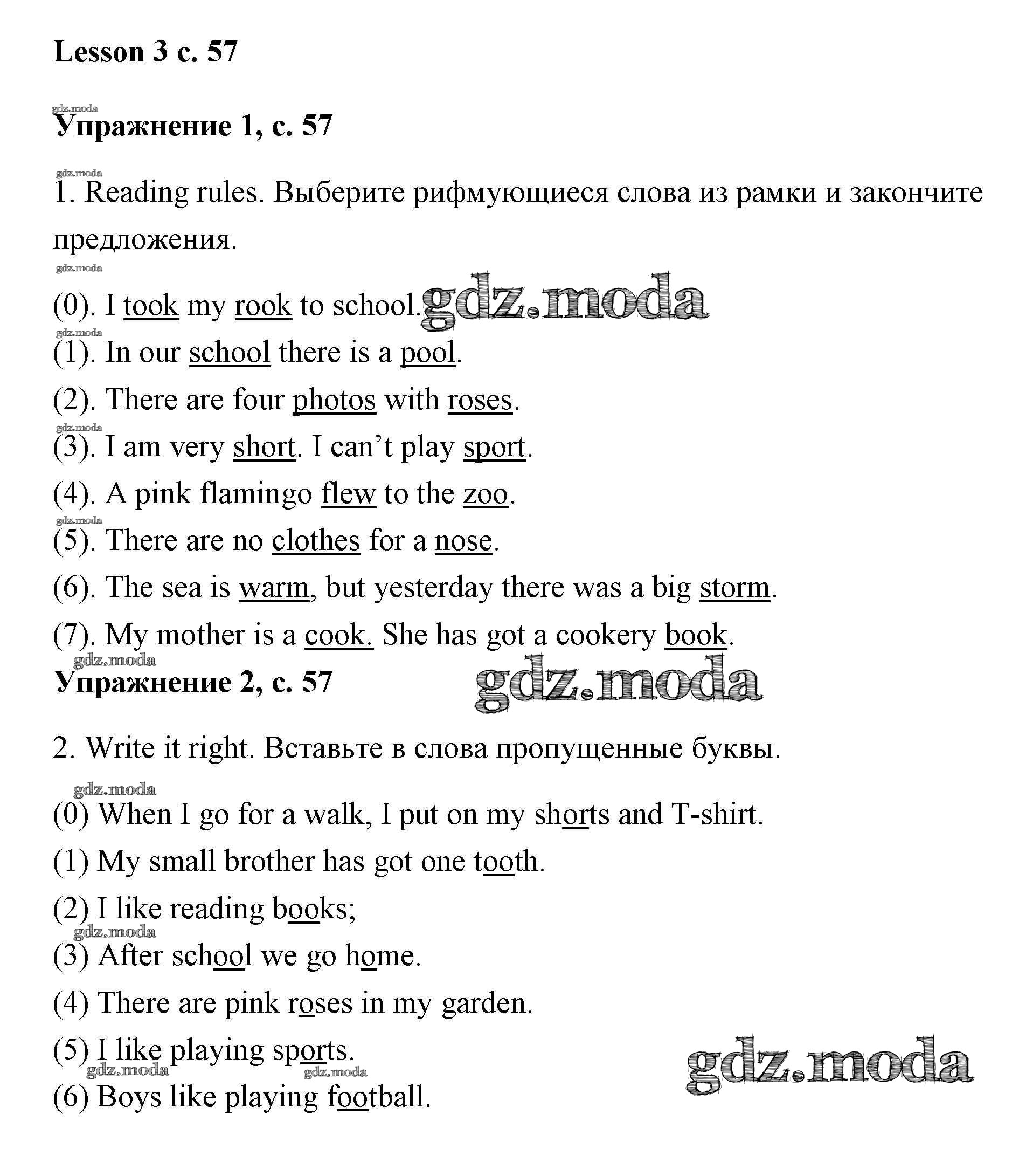 ГДЗ решение к заданию № Lesson 3 (страница 57) Английский язык 3 класс Кузовлёв (рабочая тетрадь) Просвещение 2016 ФГОС бесплатно на гдз.мода!