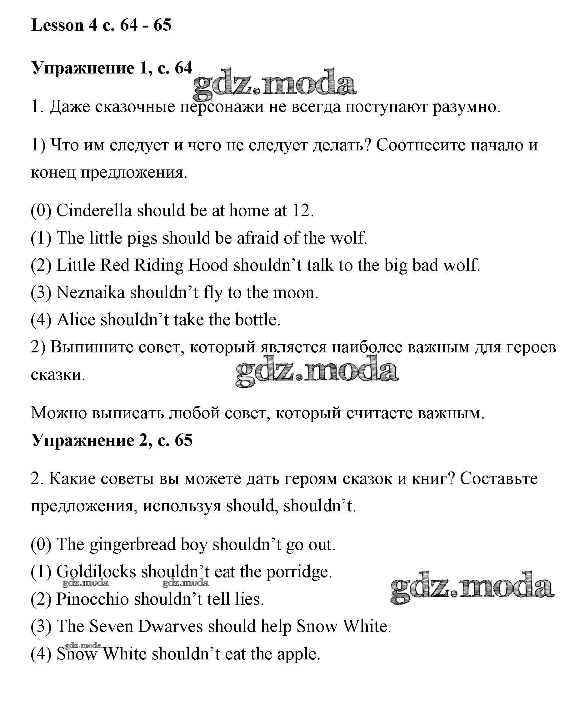 ГДЗ решение к заданию № Lesson 4 (страницы 64-65) Английский язык 3 класс Кузовлёв (рабочая тетрадь) Просвещение 2016 ФГОС бесплатно на гдз.мода!
