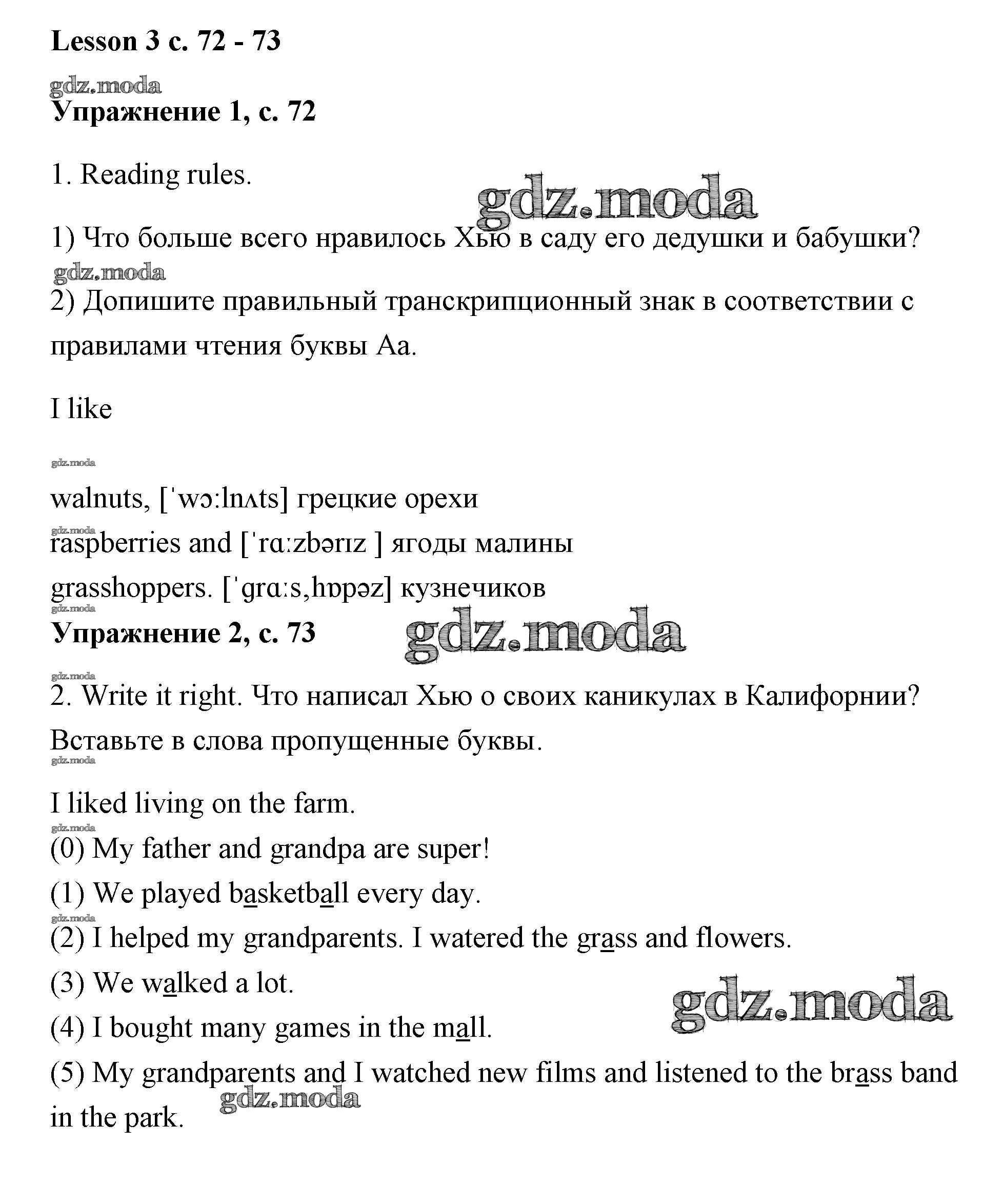 ГДЗ решение к заданию № Lesson 3 (страницы 72-73) Английский язык 3 класс Кузовлёв (рабочая тетрадь) Просвещение 2016 ФГОС бесплатно на гдз.мода!