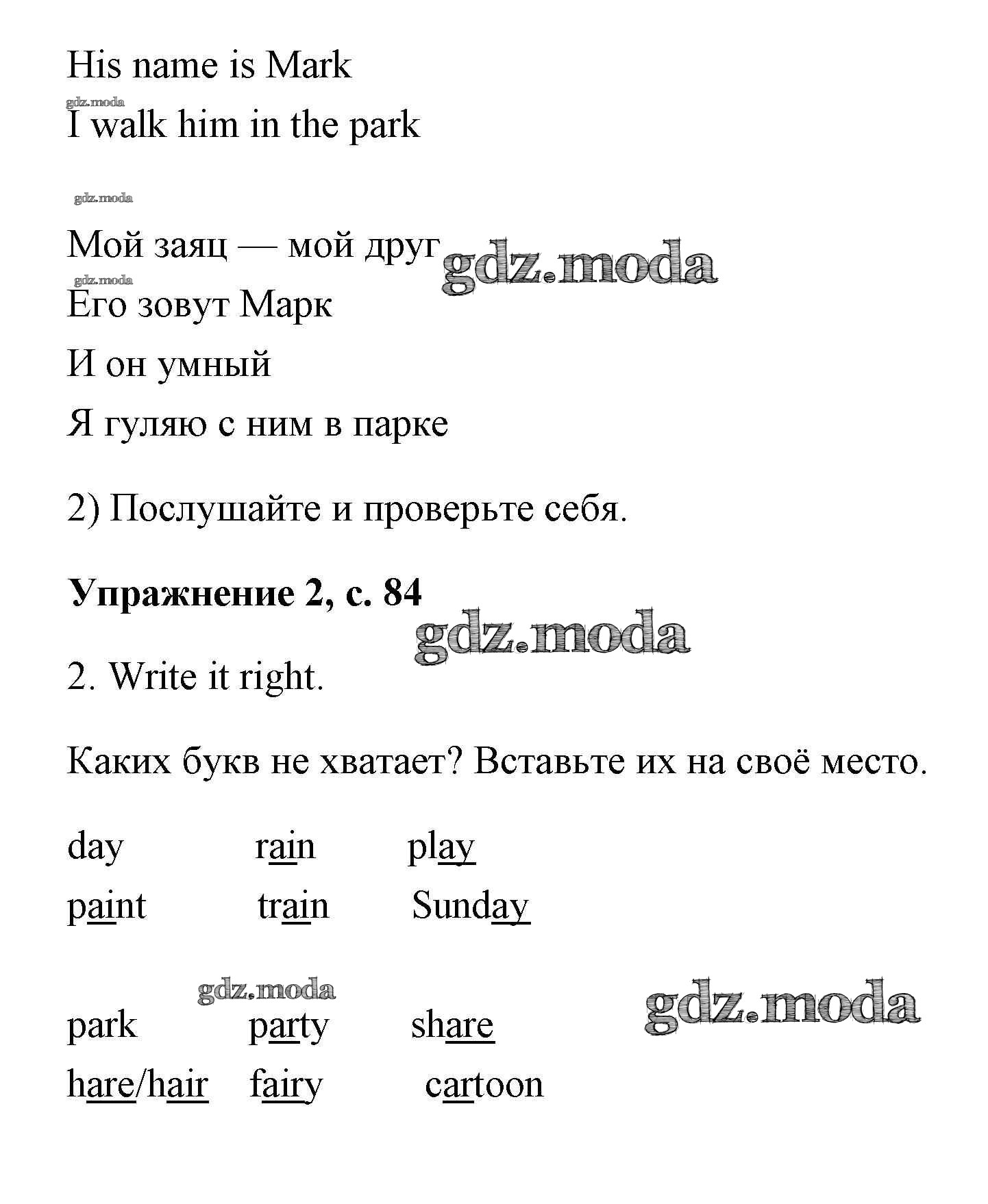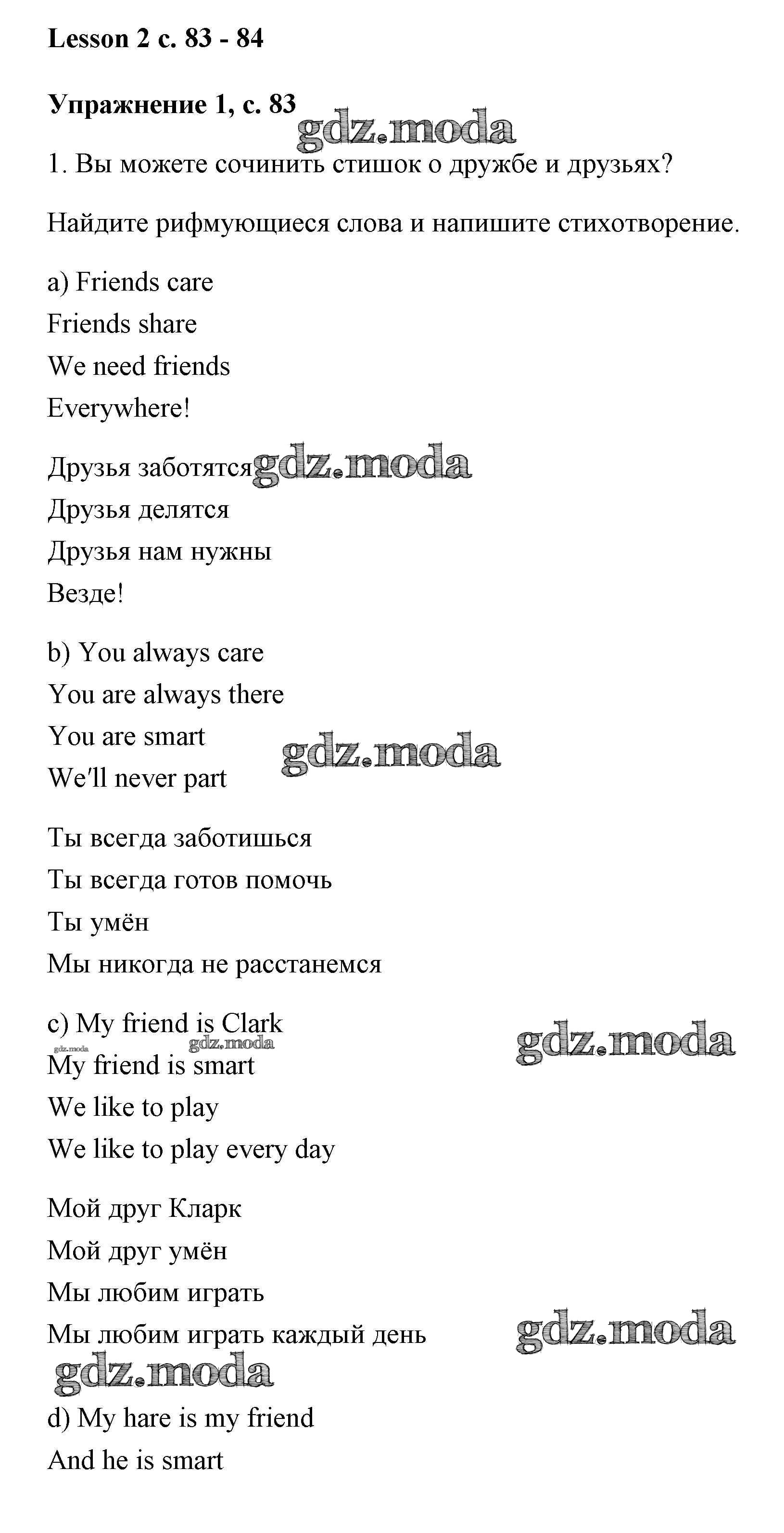 ОТВЕТ на задание № Lesson 2 (страницы 83-84) Рабочая тетрадь по Английскому языку 3 класс Кузовлев