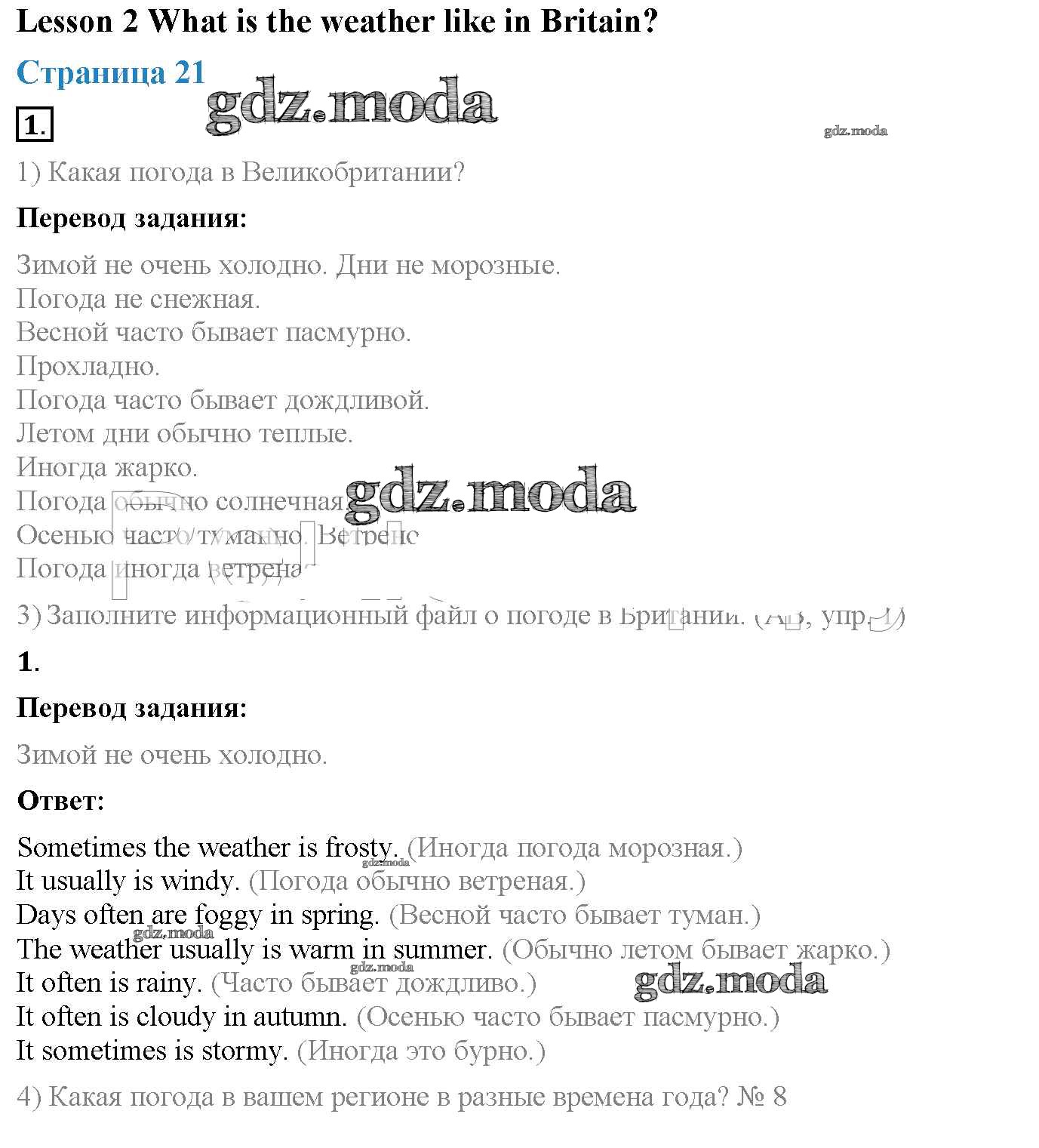 ОТВЕТ на задание № Lesson 2 (страницы 21 – 23) Учебник по Английскому языку 3 класс Кузовлев