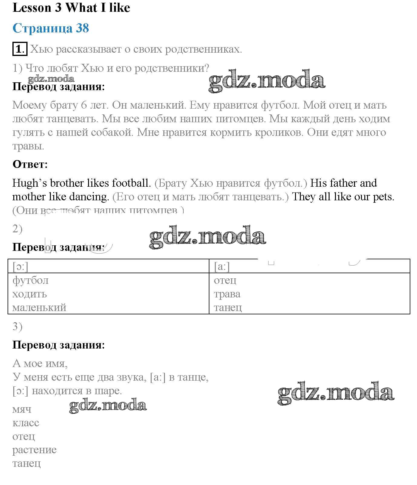 ОТВЕТ на задание № Lesson 3 (страницы 38 – 40) Учебник по Английскому языку 3 класс Кузовлев