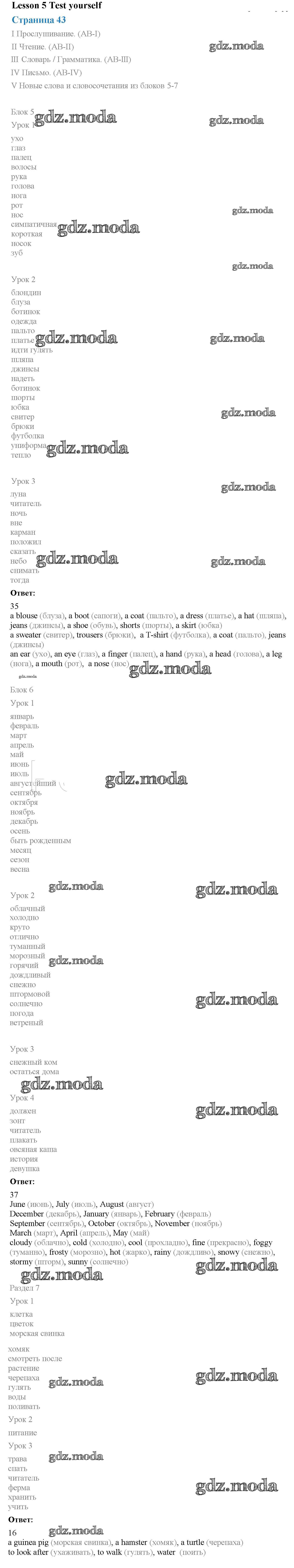 ОТВЕТ на задание № Lesson 5 (страницы 43 – 44) Учебник по Английскому языку 3 класс Кузовлев