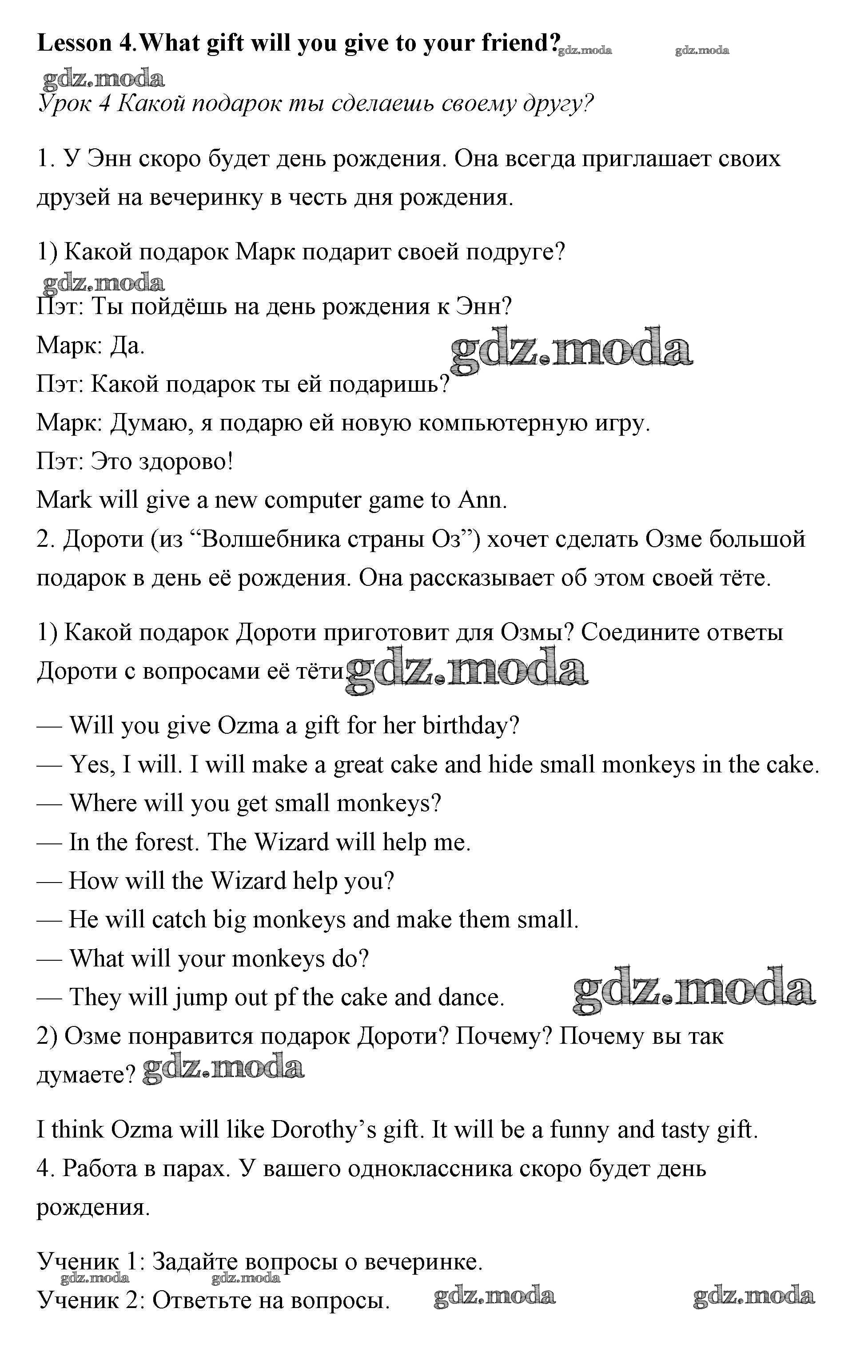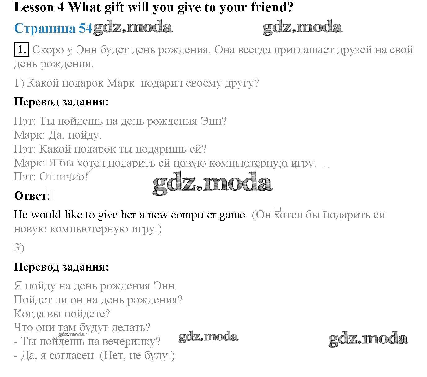 ОТВЕТ на задание № Lesson 4 (страницы 54 – 56) Учебник по Английскому языку 3 класс Кузовлев