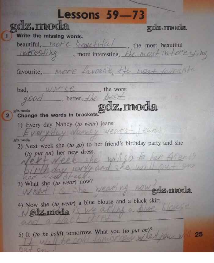 ГДЗ решение к заданию № 25 Английский язык 3 класс рабочая тетрадь Верещагина Просвещение 2017 Углубленный уровень ФГОС бесплатно на гдз.мода!