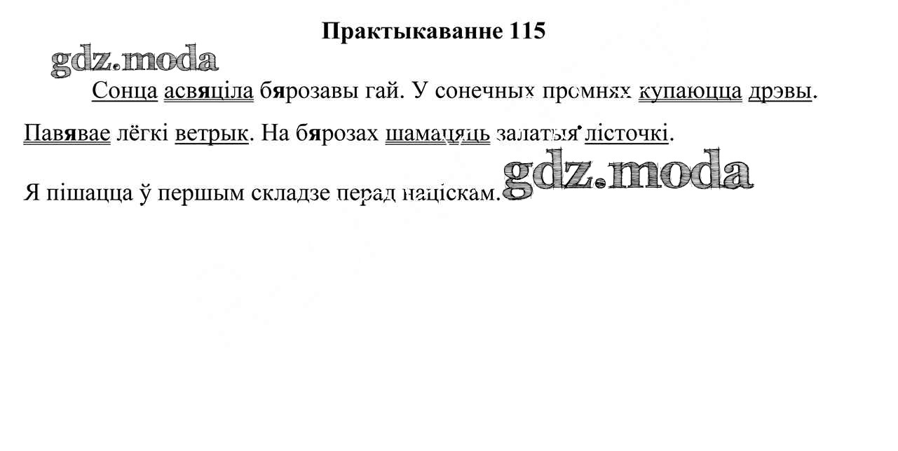 ГДЗ решение к заданию № 115 Беларуская мова 3 клас Свірыдзенка В. I. Национальный институт образования 2017 Часть 1, Часть 2 бесплатно на гдз.мода!