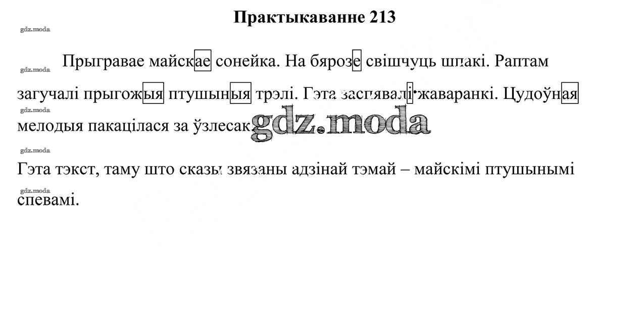 ГДЗ решение к заданию № 213 Беларуская мова 3 клас Свірыдзенка В. I. Национальный институт образования 2017 Часть 1, Часть 2 бесплатно на гдз.мода!
