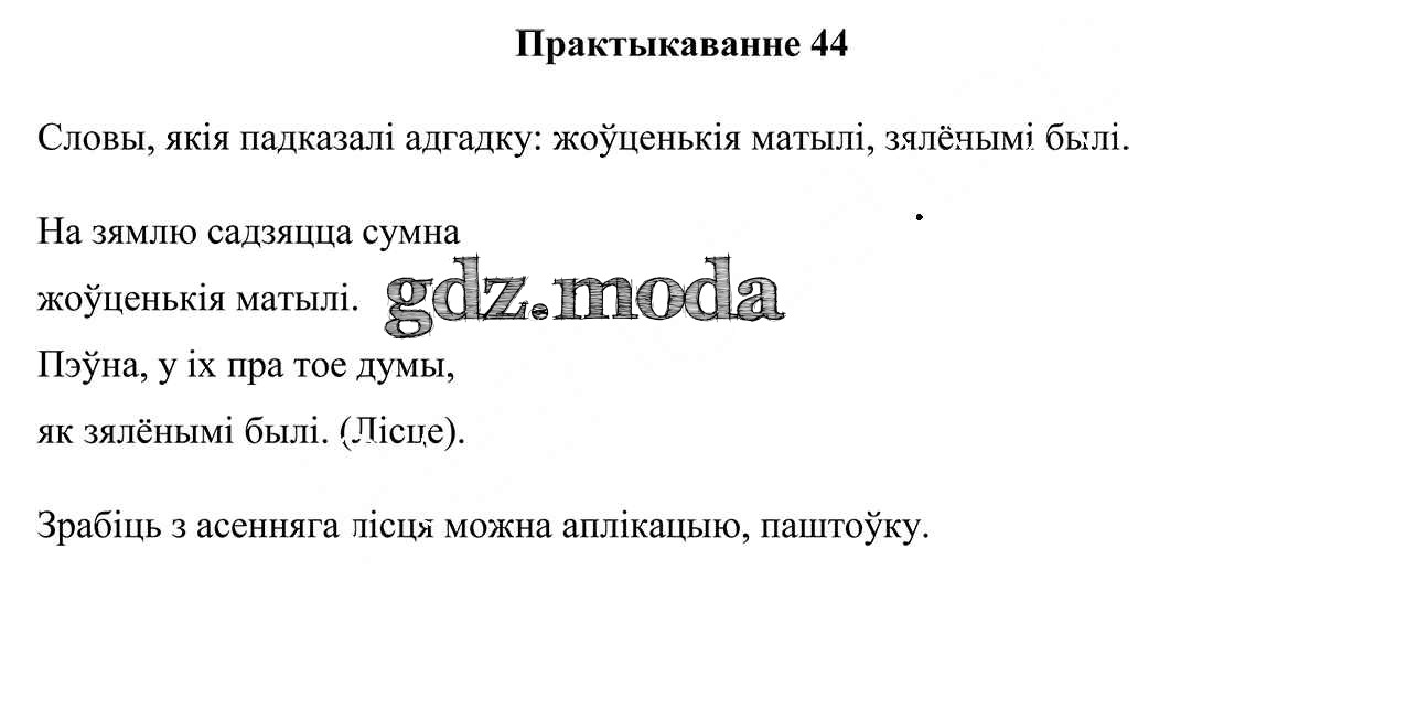 ГДЗ решение к заданию № 44 Беларуская мова 3 клас Свірыдзенка В. I. Национальный институт образования 2017 Часть 1, Часть 2 бесплатно на гдз.мода!