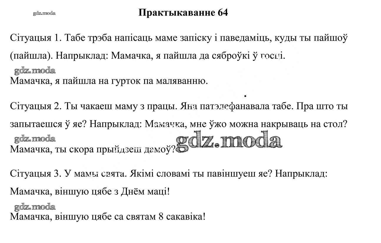 ГДЗ решение к заданию № 64 Беларуская мова 3 клас Свірыдзенка В. I. Национальный институт образования 2017 Часть 1, Часть 2 бесплатно на гдз.мода!