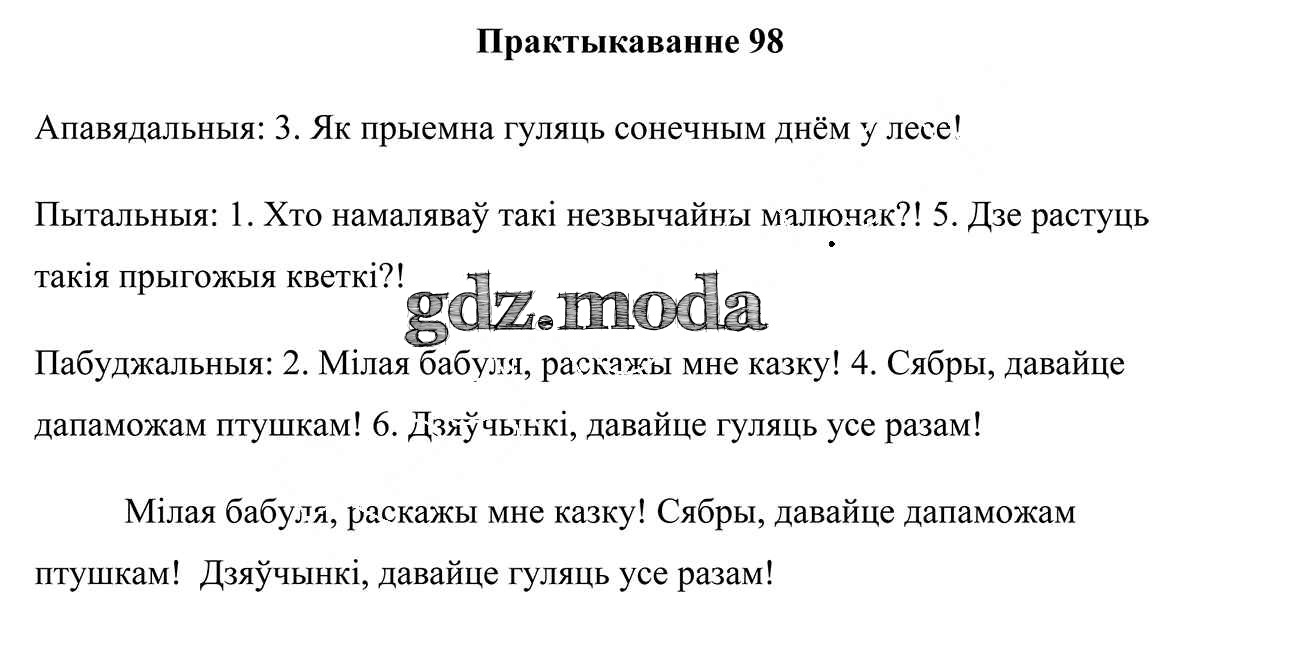 ГДЗ решение к заданию № 98 Беларуская мова 3 клас Свірыдзенка В. I. Национальный институт образования 2017 Часть 1, Часть 2 бесплатно на гдз.мода!