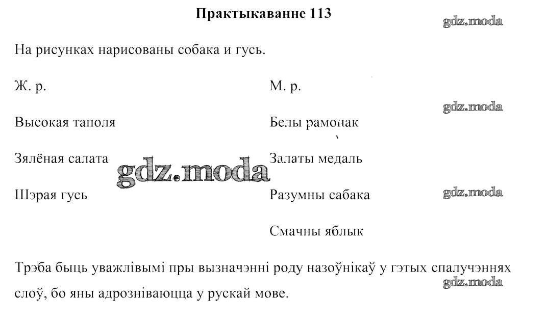 ГДЗ решение к заданию № 113 Беларуская мова 3 клас Свірыдзенка В. I. Национальный институт образования 2017 Часть 1, Часть 2 бесплатно на гдз.мода!