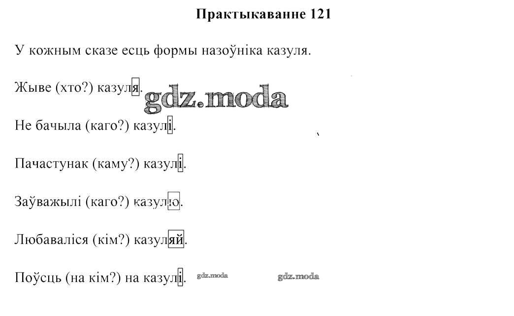 ГДЗ решение к заданию № 121 Беларуская мова 3 клас Свірыдзенка В. I. Национальный институт образования 2017 Часть 1, Часть 2 бесплатно на гдз.мода!