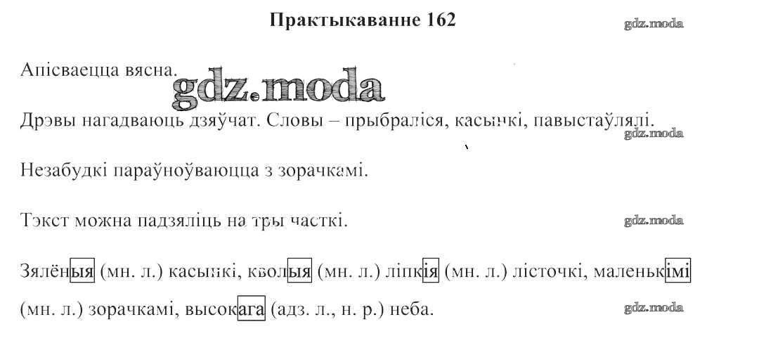 ГДЗ решение к заданию № 162 Беларуская мова 3 клас Свірыдзенка В. I. Национальный институт образования 2017 Часть 1, Часть 2 бесплатно на гдз.мода!