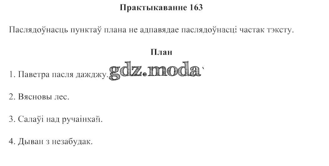 ГДЗ решение к заданию № 163 Беларуская мова 3 клас Свірыдзенка В. I. Национальный институт образования 2017 Часть 1, Часть 2 бесплатно на гдз.мода!