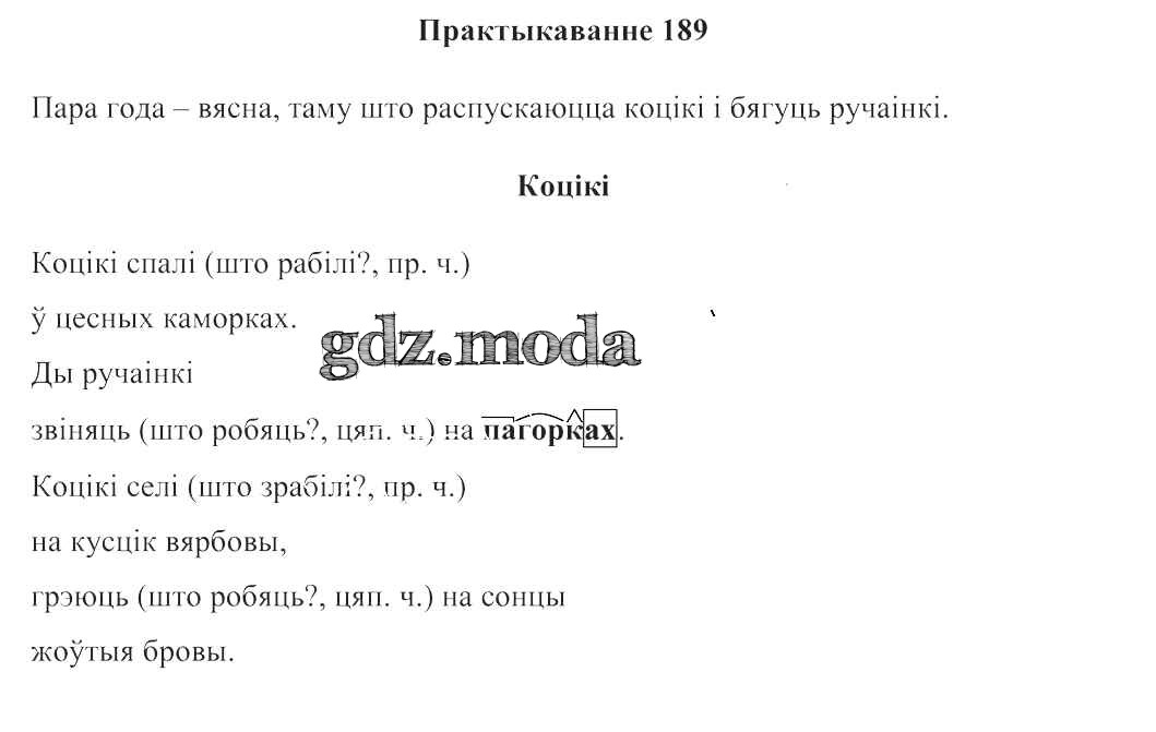 ГДЗ решение к заданию № 189 Беларуская мова 3 клас Свірыдзенка В. I. Национальный институт образования 2017 Часть 1, Часть 2 бесплатно на гдз.мода!