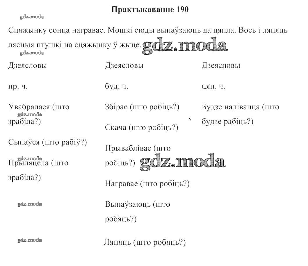 ГДЗ решение к заданию № 190 Беларуская мова 3 клас Свірыдзенка В. I. Национальный институт образования 2017 Часть 1, Часть 2 бесплатно на гдз.мода!