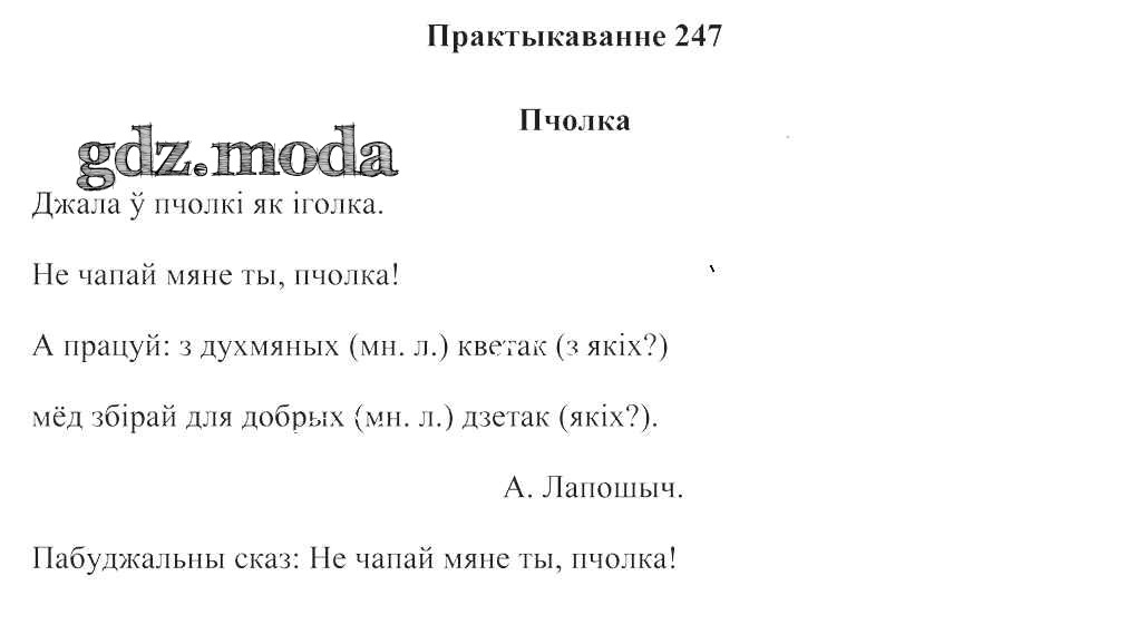 ГДЗ решение к заданию № 247 Беларуская мова 3 клас Свірыдзенка В. I. Национальный институт образования 2017 Часть 1, Часть 2 бесплатно на гдз.мода!
