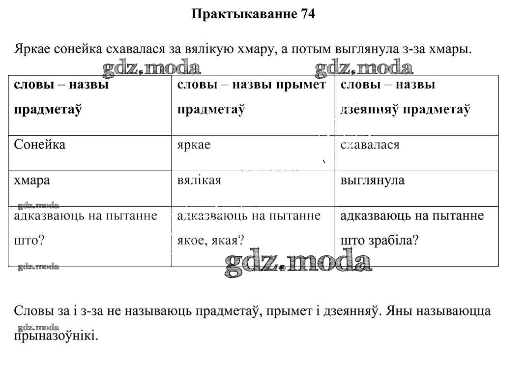 ГДЗ решение к заданию № 74 Беларуская мова 3 клас Свірыдзенка В. I. Национальный институт образования 2017 Часть 1, Часть 2 бесплатно на гдз.мода!
