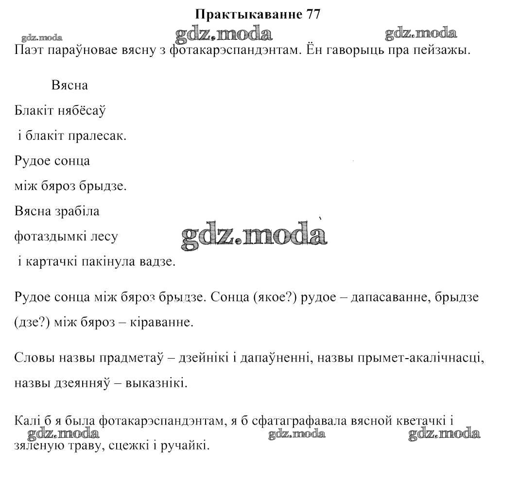 ГДЗ решение к заданию № 77 Беларуская мова 3 клас Свірыдзенка В. I. Национальный институт образования 2017 Часть 1, Часть 2 бесплатно на гдз.мода!