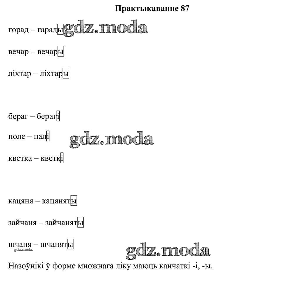ГДЗ решение к заданию № 87 Беларуская мова 3 клас Свірыдзенка В. I. Национальный институт образования 2017 Часть 1, Часть 2 бесплатно на гдз.мода!