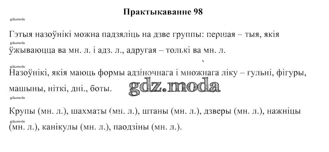 ГДЗ решение к заданию № 98 Беларуская мова 3 клас Свірыдзенка В. I. Национальный институт образования 2017 Часть 1, Часть 2 бесплатно на гдз.мода!