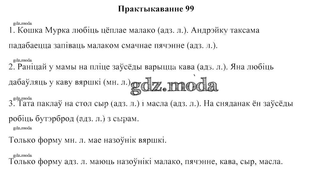 ГДЗ решение к заданию № 99 Беларуская мова 3 клас Свірыдзенка В. I. Национальный институт образования 2017 Часть 1, Часть 2 бесплатно на гдз.мода!