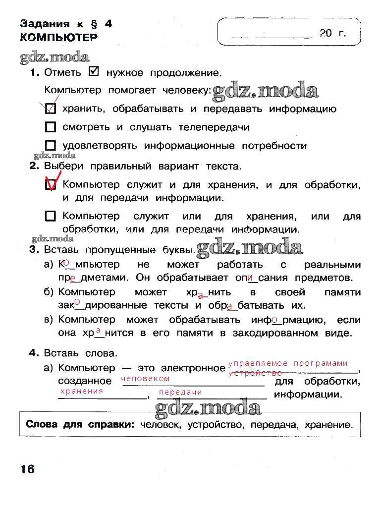 ГДЗ решение к заданию № 16 Информатика 3 класс рабочая тетрадь Матвеева Н.В. Бином 2017 Часть 1, Часть 2 ФГОС бесплатно на гдз.мода!