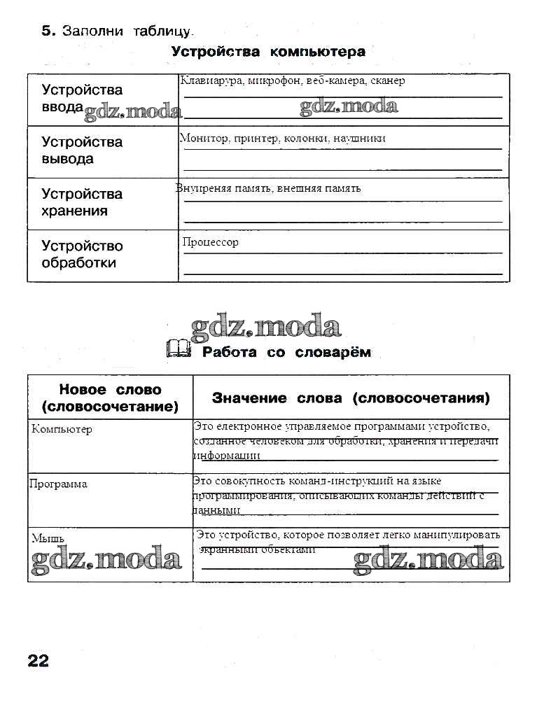 ГДЗ решение к заданию № 22 Информатика 3 класс рабочая тетрадь Матвеева Н.В. Бином 2017 Часть 1, Часть 2 ФГОС бесплатно на гдз.мода!