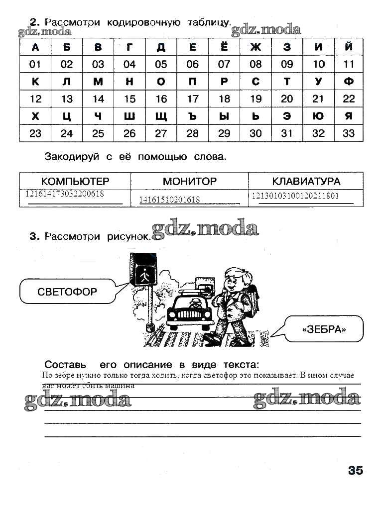ГДЗ решение к заданию № 35 Информатика 3 класс рабочая тетрадь Матвеева Н.В. Бином 2017 Часть 1, Часть 2 ФГОС бесплатно на гдз.мода!