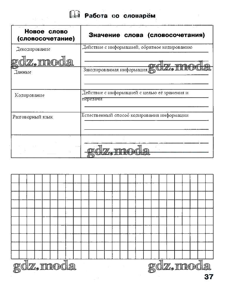 ГДЗ решение к заданию № 37 Информатика 3 класс рабочая тетрадь Матвеева Н.В. Бином 2017 Часть 1, Часть 2 ФГОС бесплатно на гдз.мода!