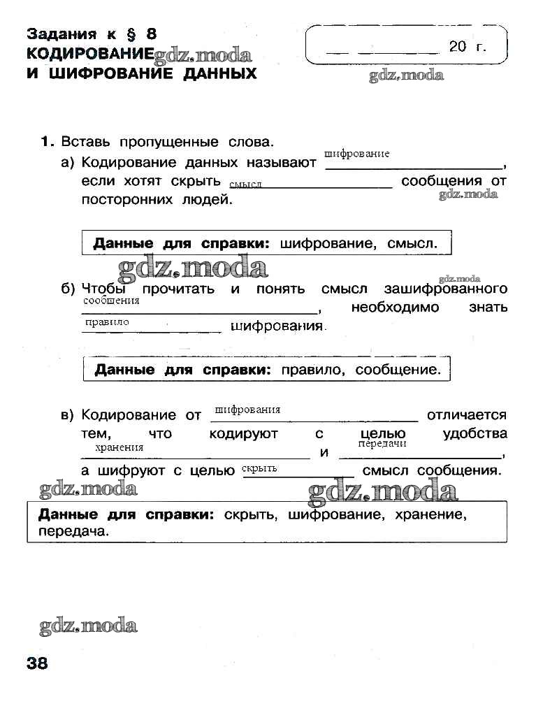 ОТВЕТ на задание № 38 Рабочая тетрадь по Информатике 3 класс Матвеева