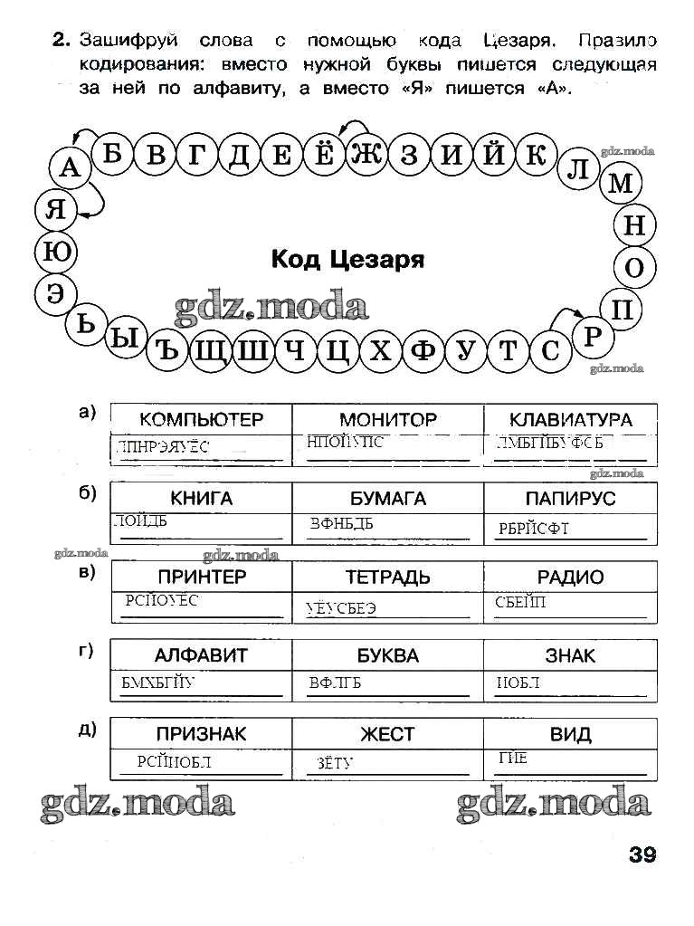 ГДЗ решение к заданию № 39 Информатика 3 класс рабочая тетрадь Матвеева Н.В. Бином 2017 Часть 1, Часть 2 ФГОС бесплатно на гдз.мода!