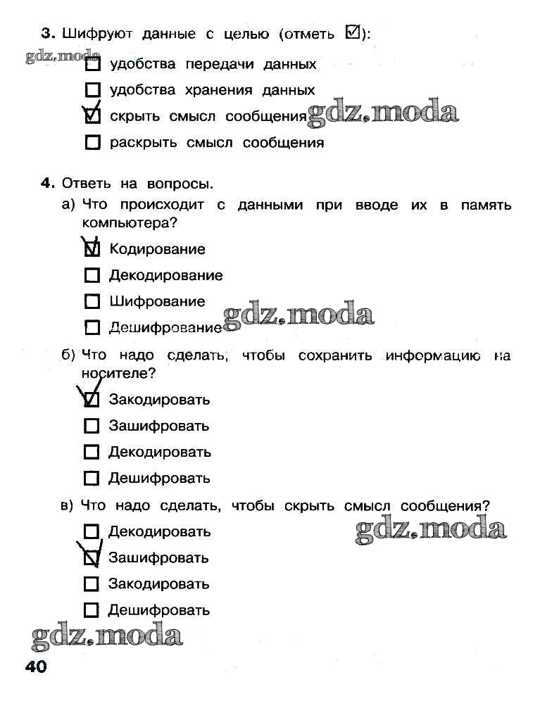 ГДЗ решение к заданию № 40 Информатика 3 класс рабочая тетрадь Матвеева Н.В. Бином 2017 Часть 1, Часть 2 ФГОС бесплатно на гдз.мода!