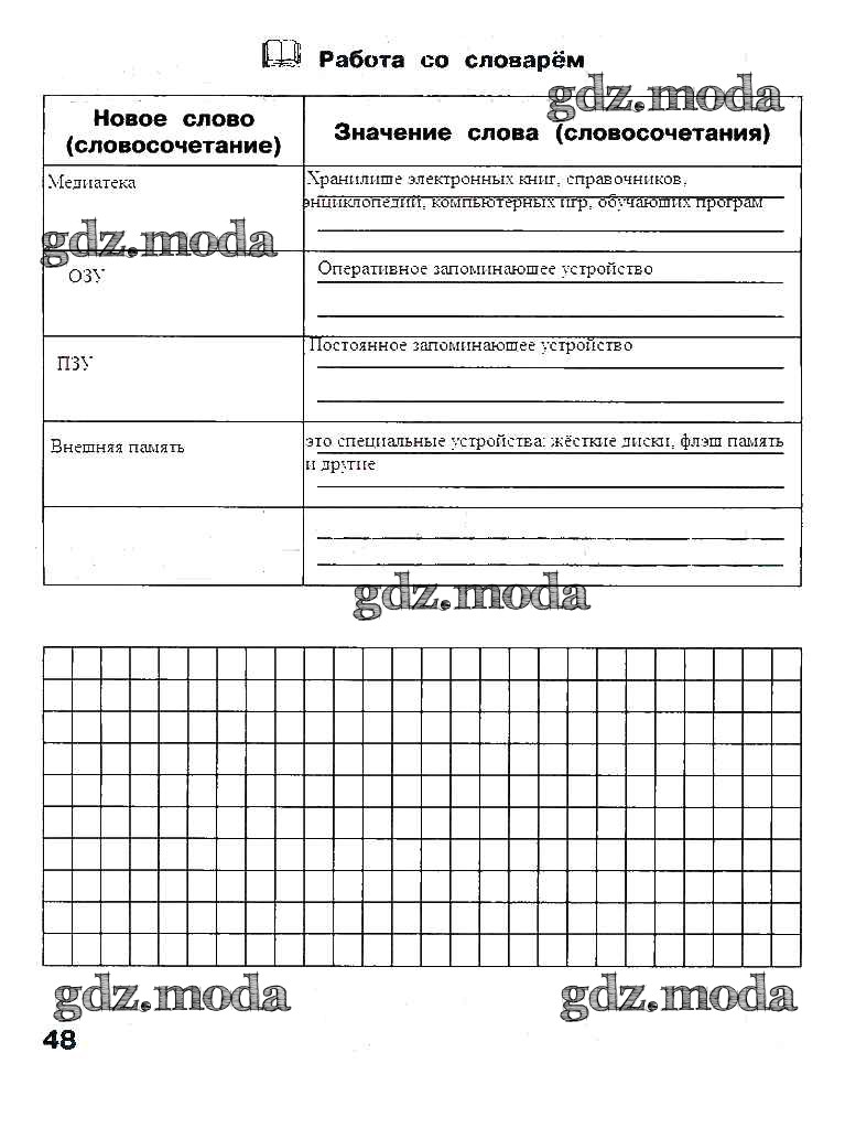 ГДЗ решение к заданию № 48 Информатика 3 класс рабочая тетрадь Матвеева Н.В. Бином 2017 Часть 1, Часть 2 ФГОС бесплатно на гдз.мода!