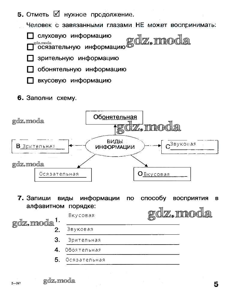 ГДЗ решение к заданию № 5 Информатика 3 класс рабочая тетрадь Матвеева Н.В. Бином 2017 Часть 1, Часть 2 ФГОС бесплатно на гдз.мода!