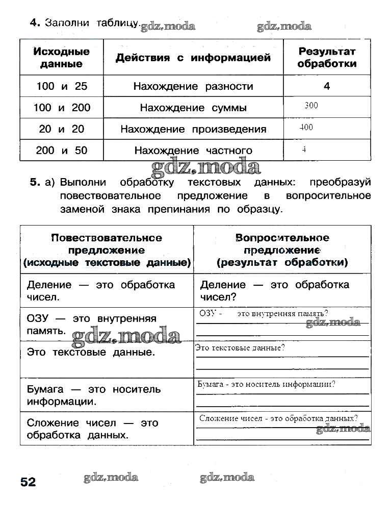 ГДЗ решение к заданию № 52 Информатика 3 класс рабочая тетрадь Матвеева Н.В. Бином 2017 Часть 1, Часть 2 ФГОС бесплатно на гдз.мода!